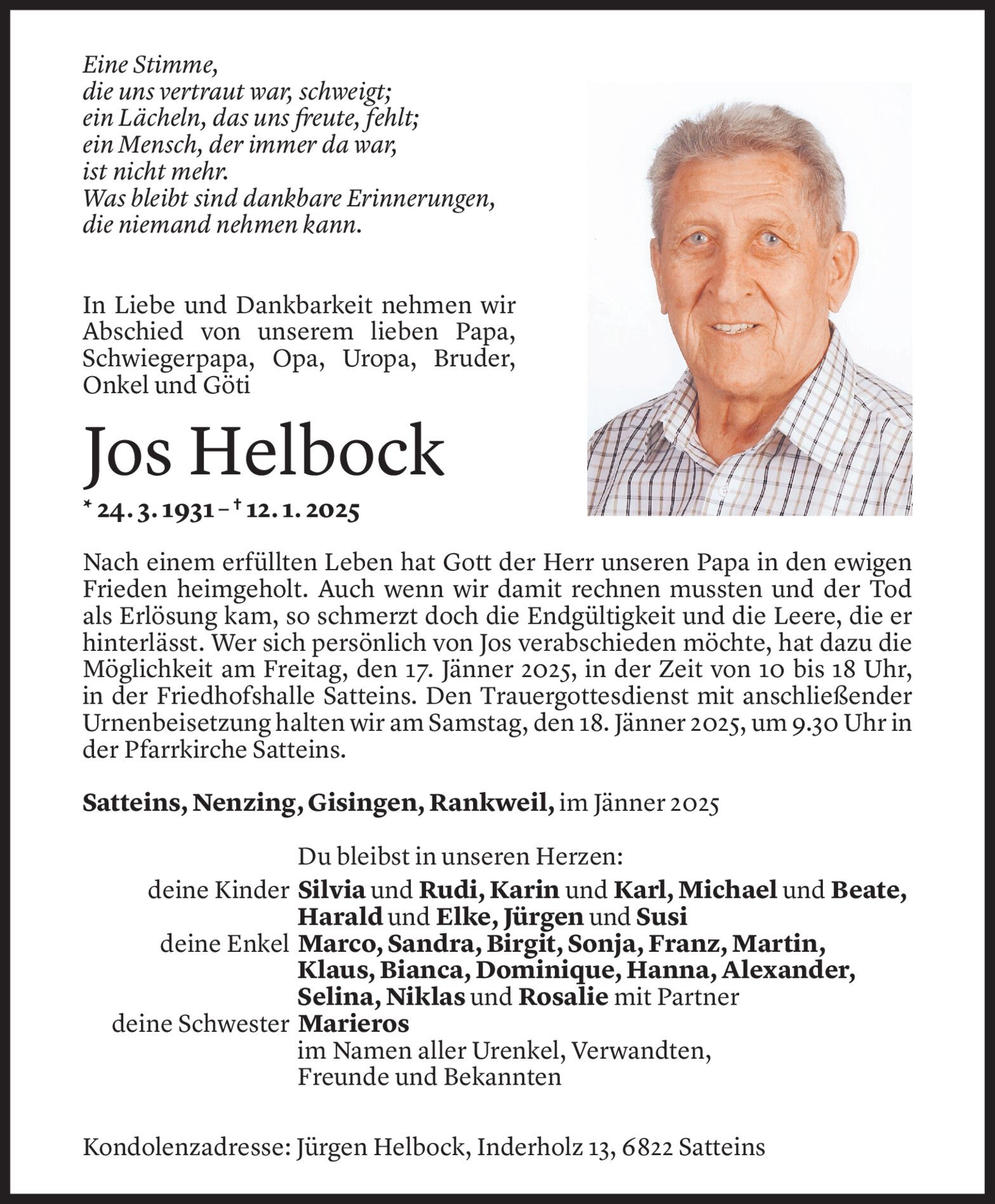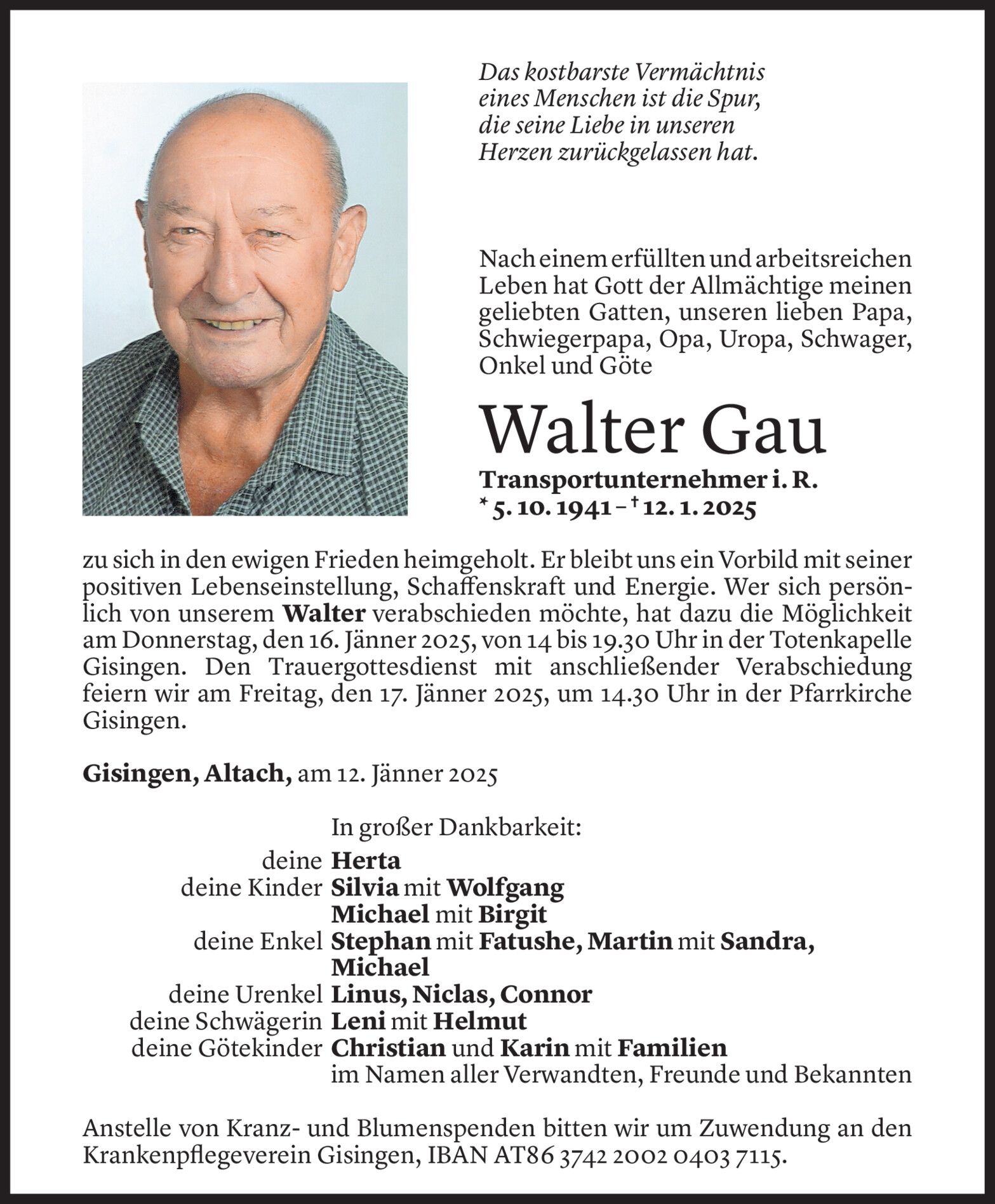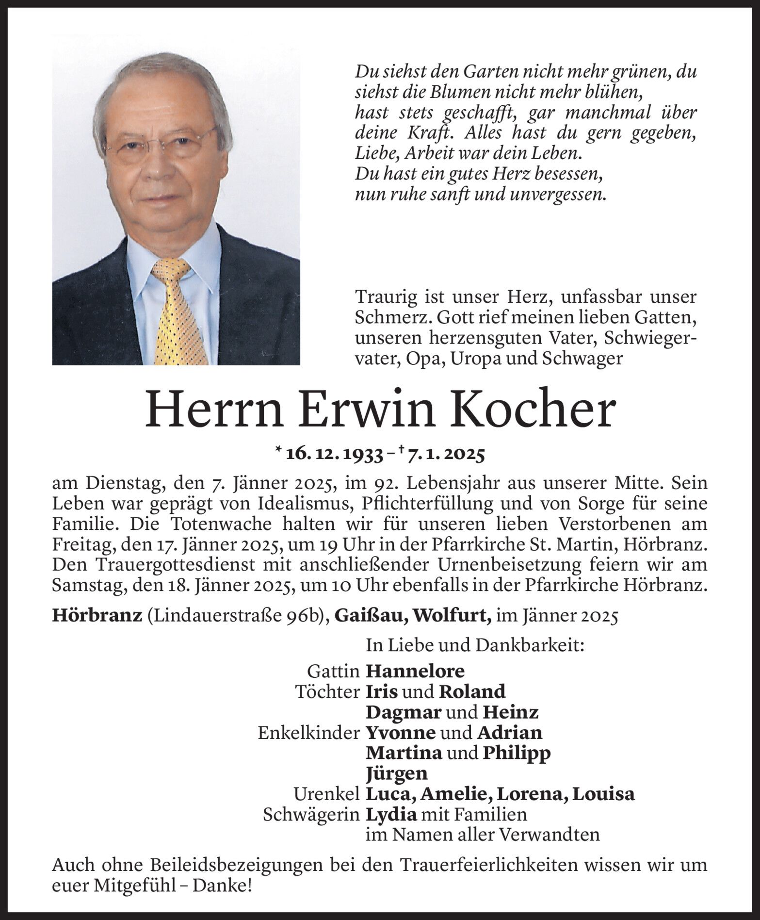 Mittwoch 15. Januar 2025