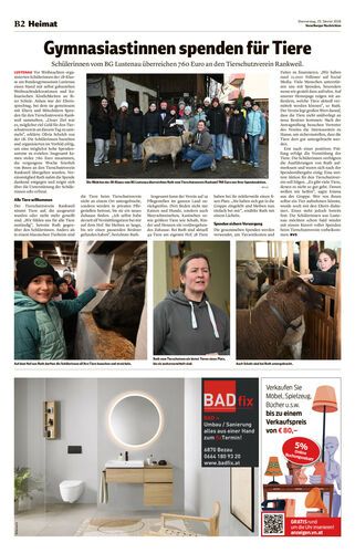 Gymnasiastinnen spenden für Tiere