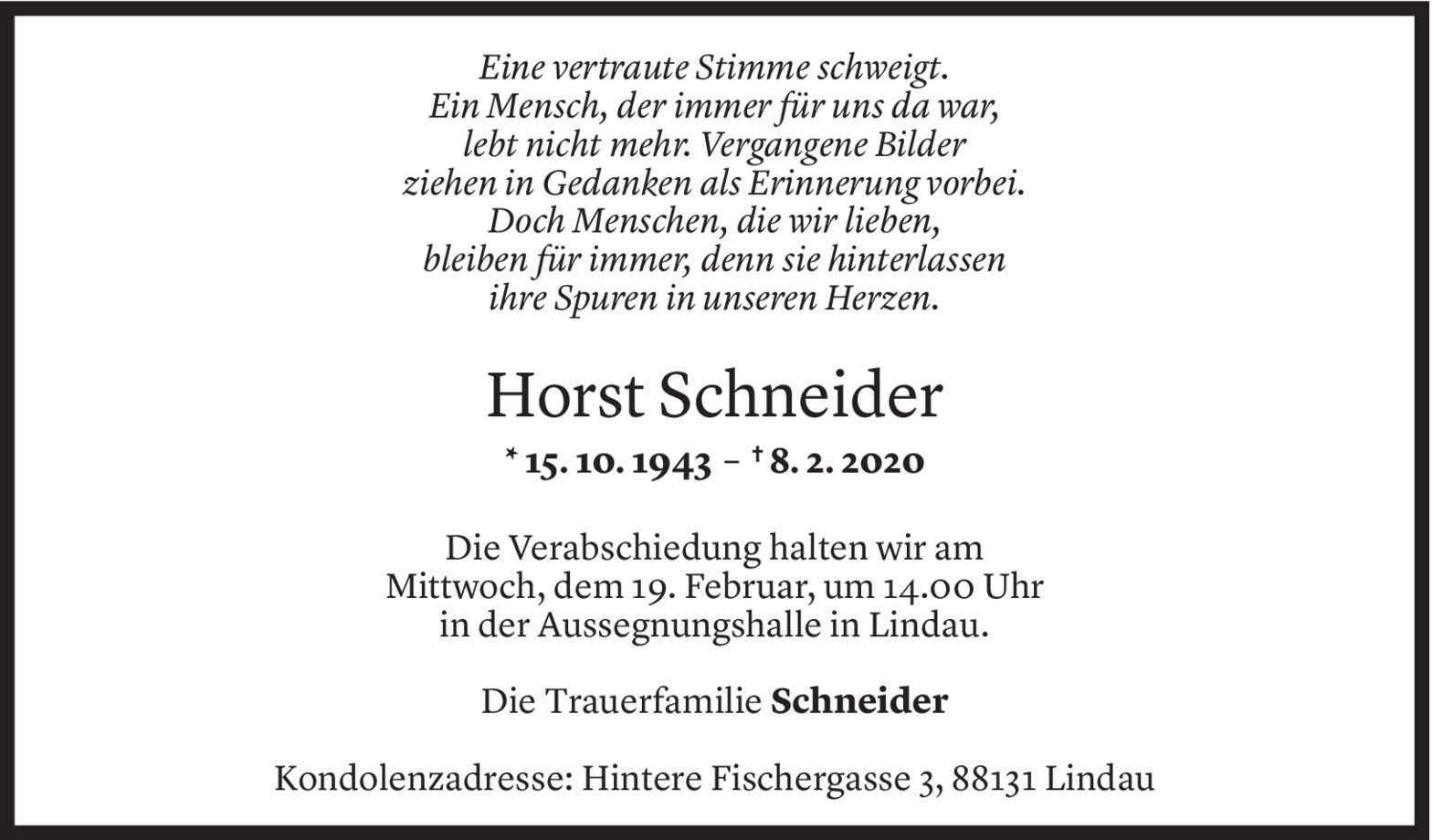 Samstag 15. Februar 2020
