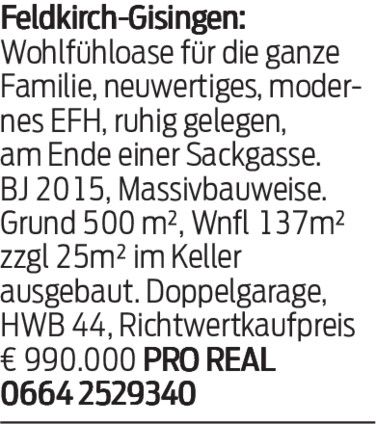 Einfamilienhaus in Innerbraz um 600.000 Euro verkauft