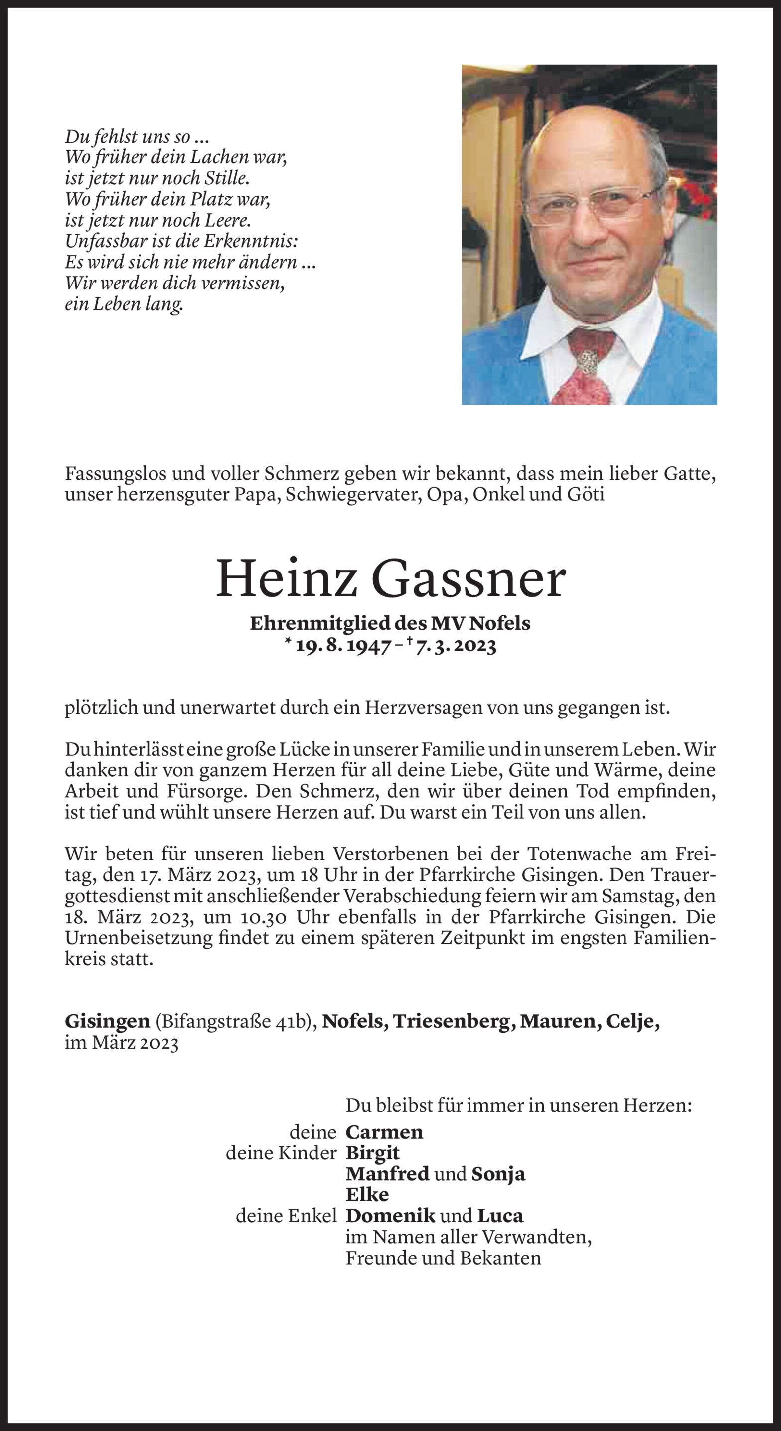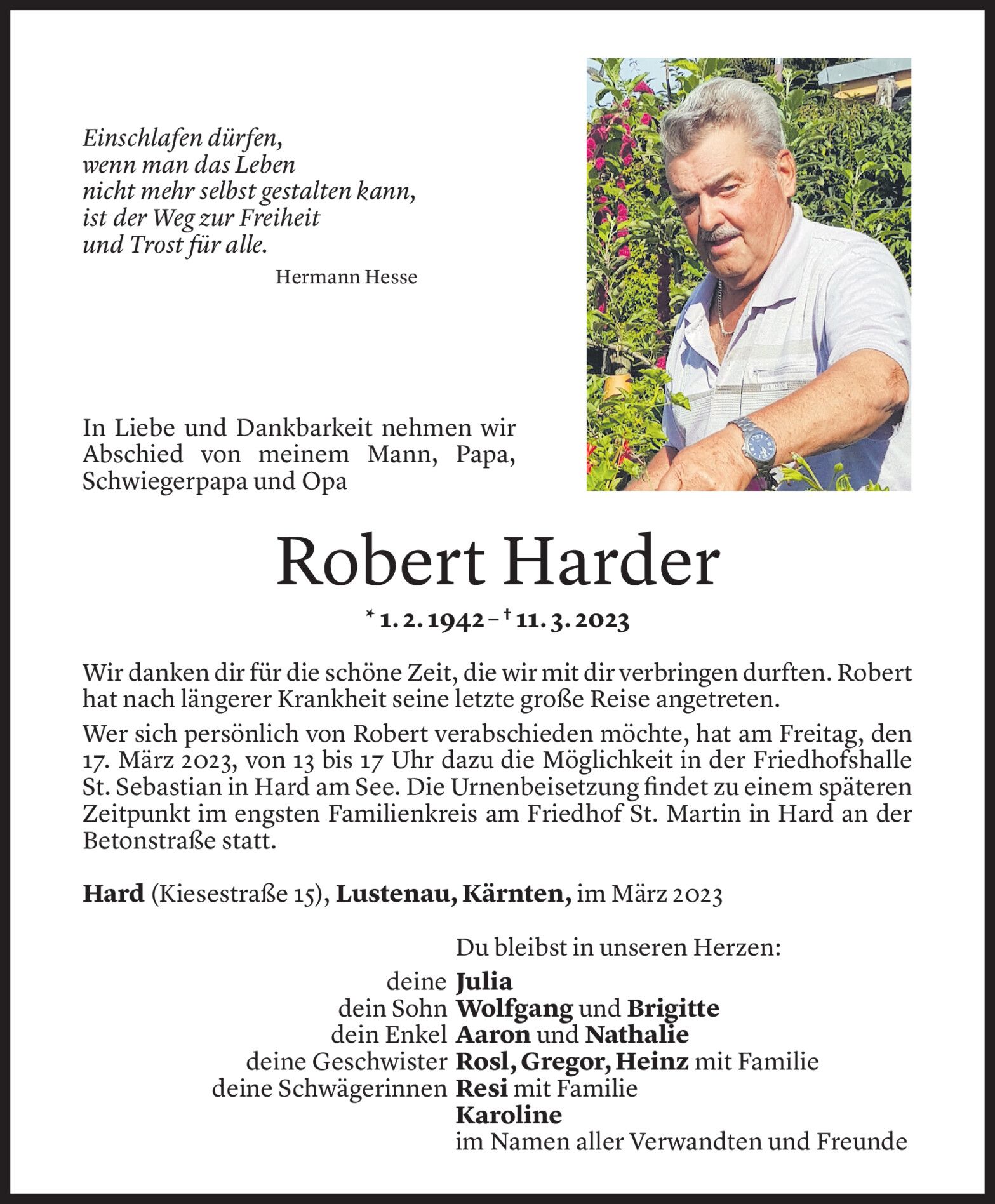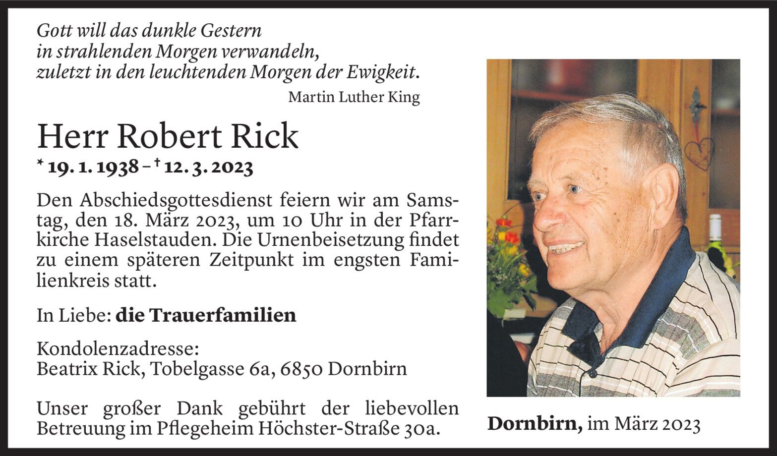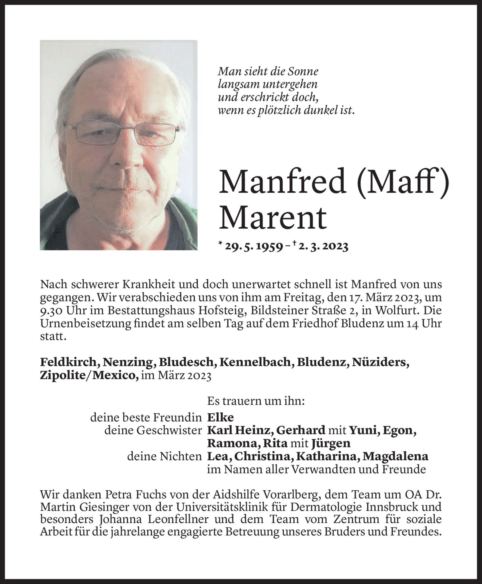 Mittwoch 15. März 2023