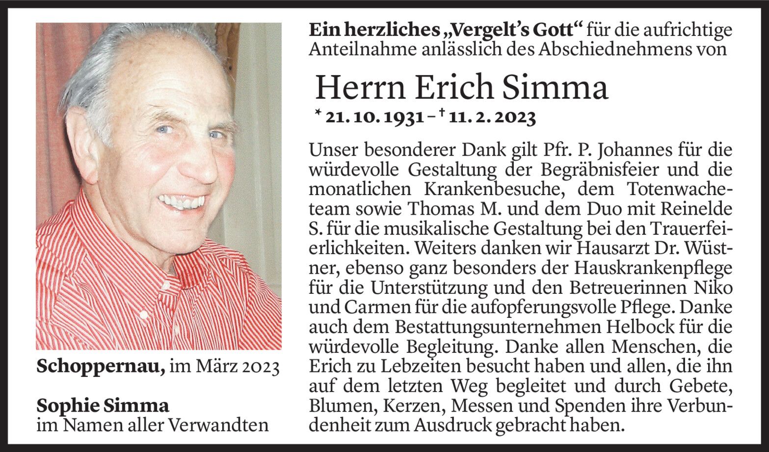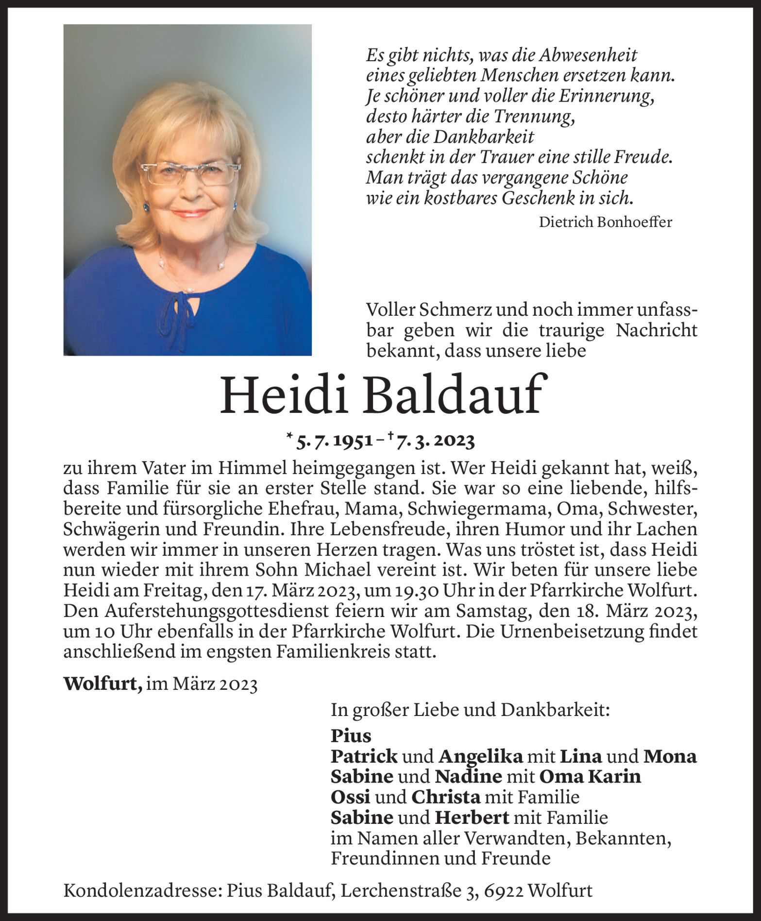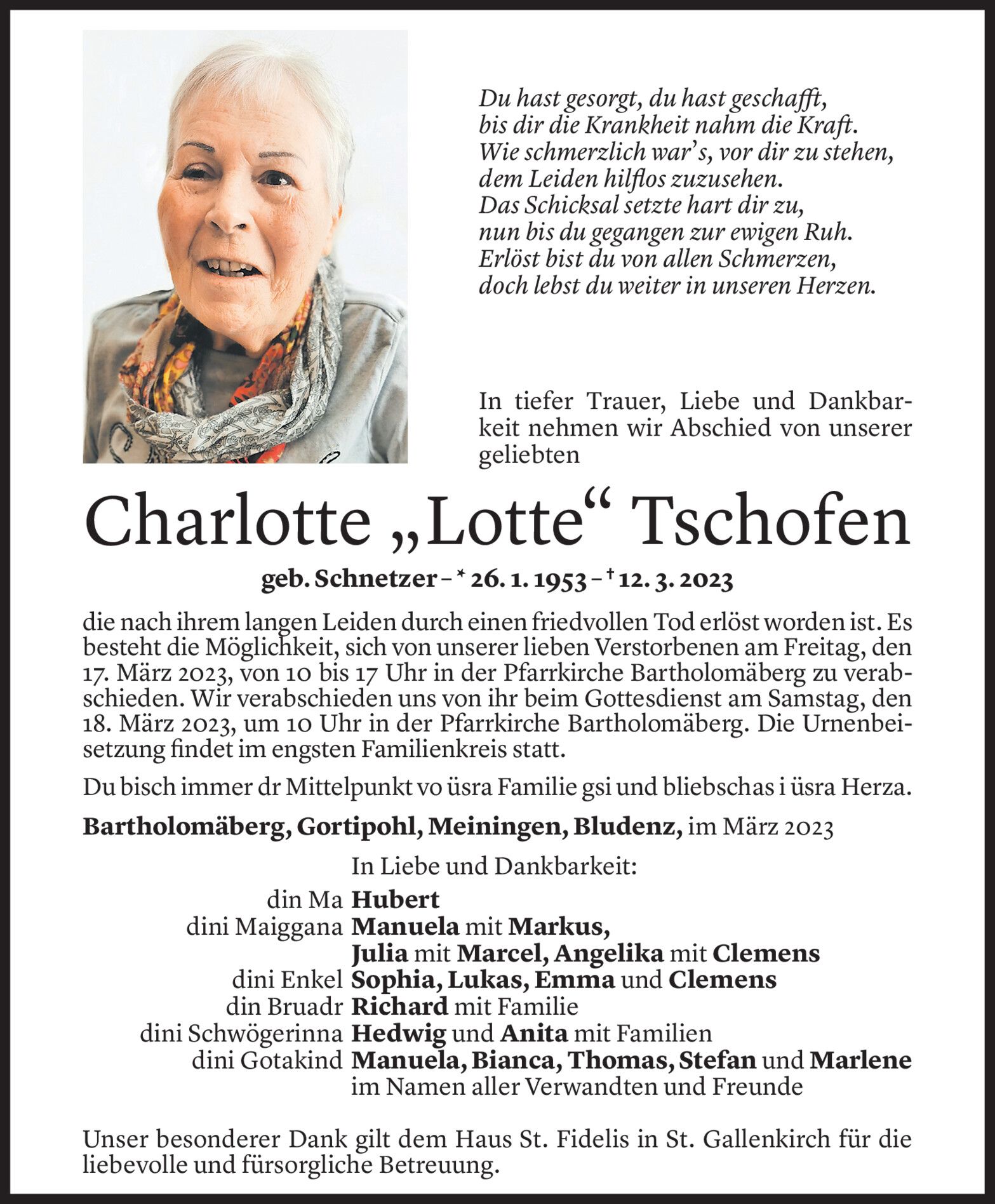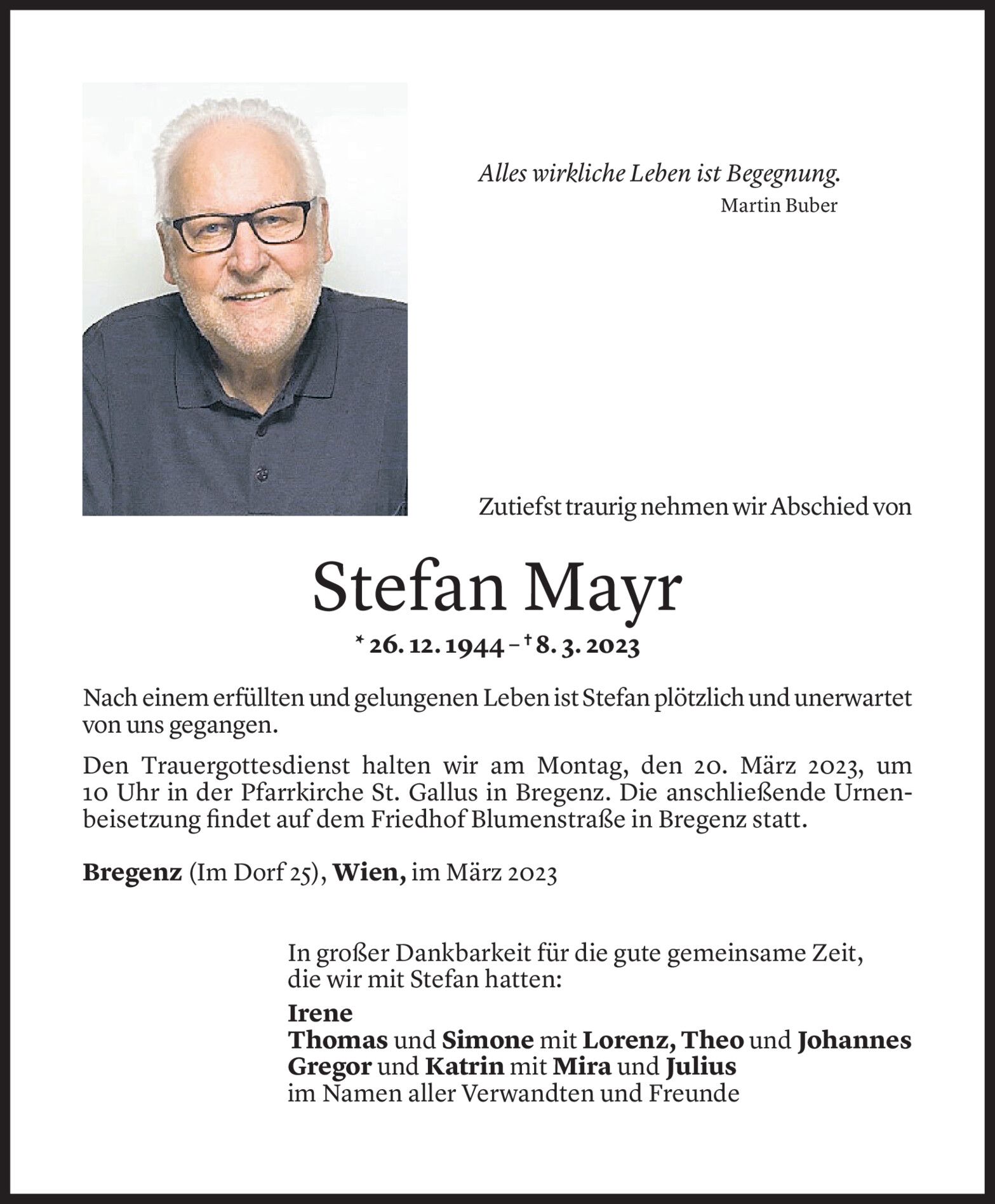 Mittwoch 15. März 2023