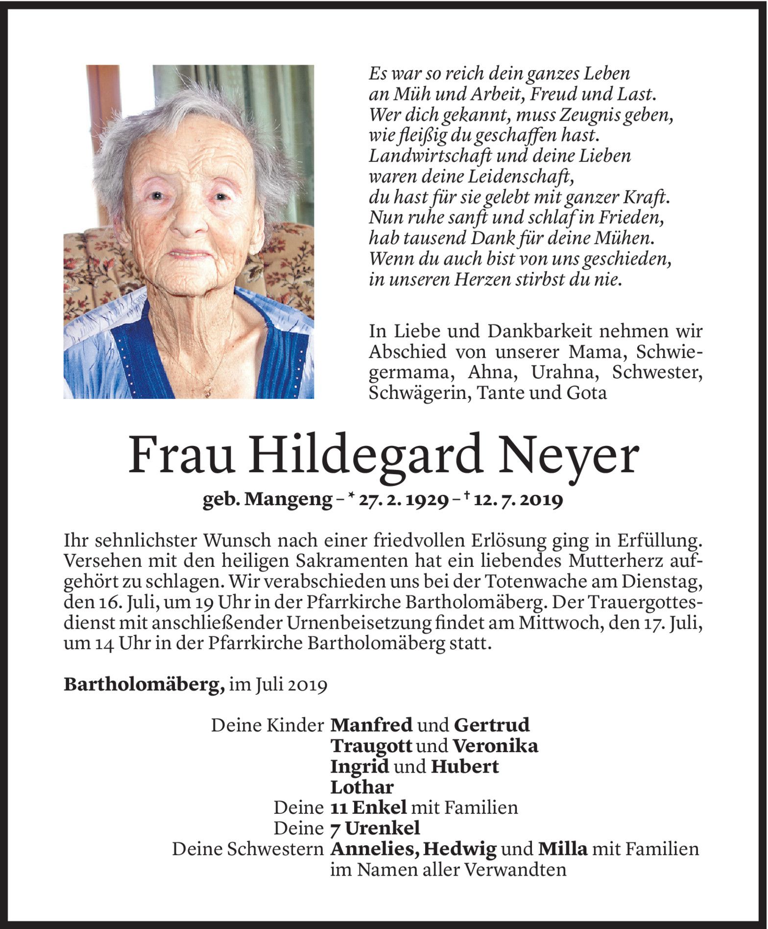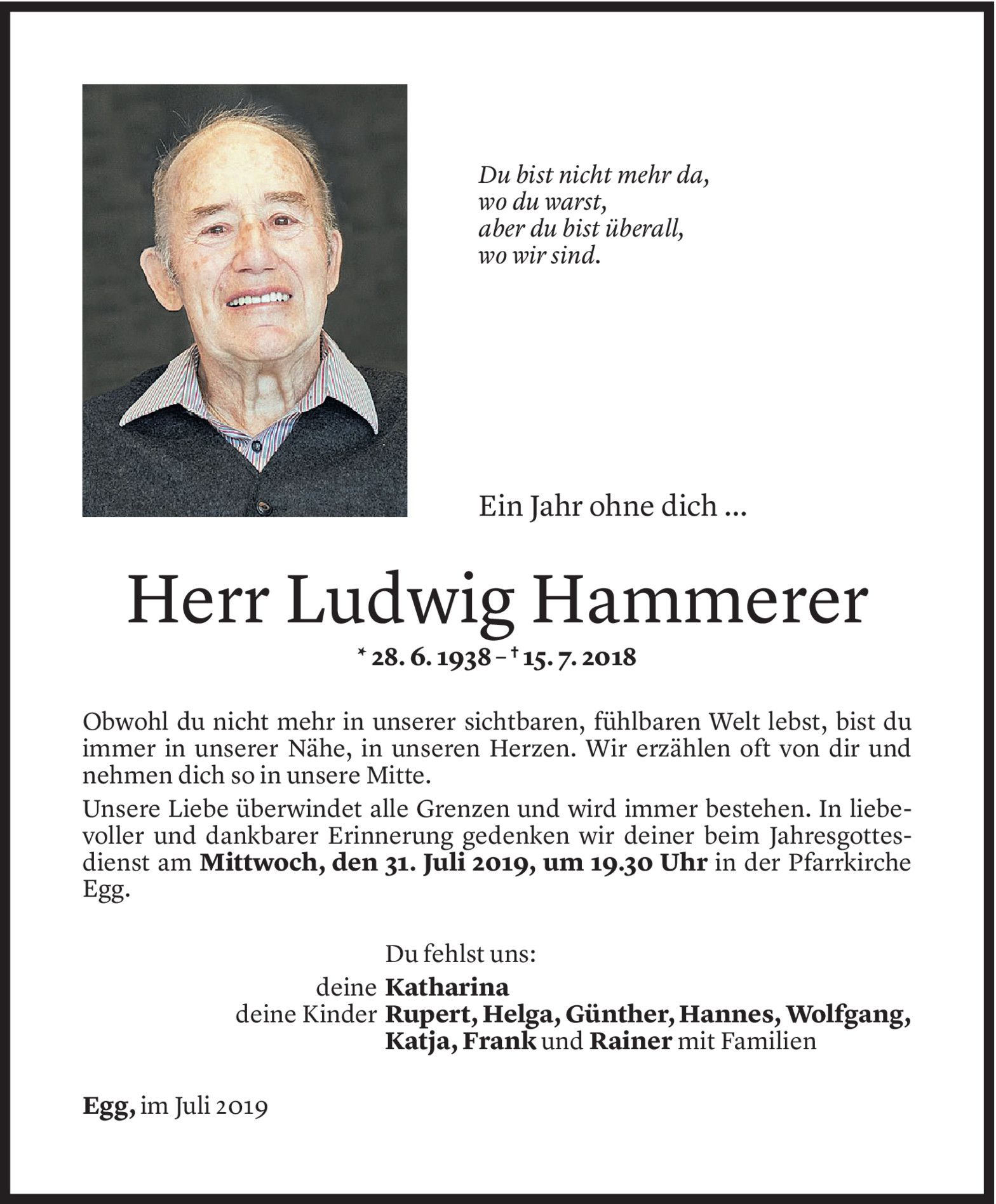 Montag 15. Juli 2019