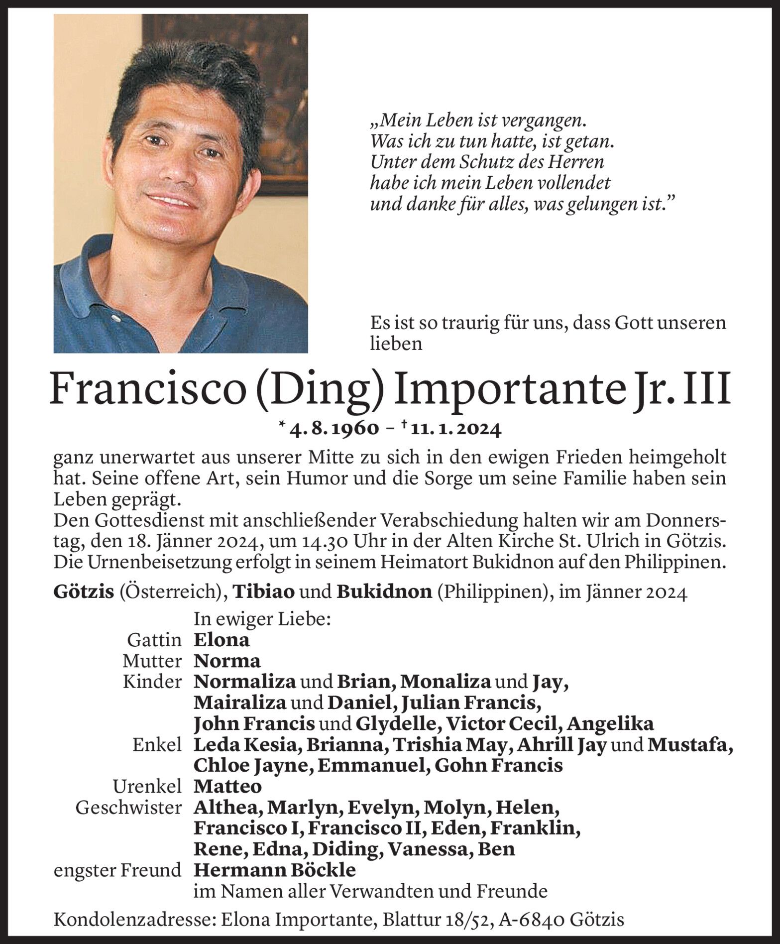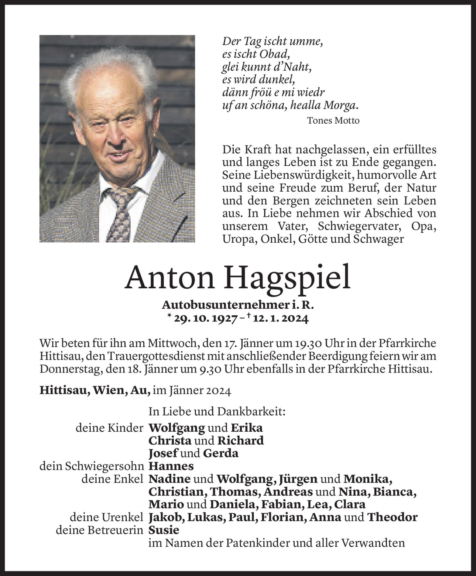 Dienstag 16. Januar 2024