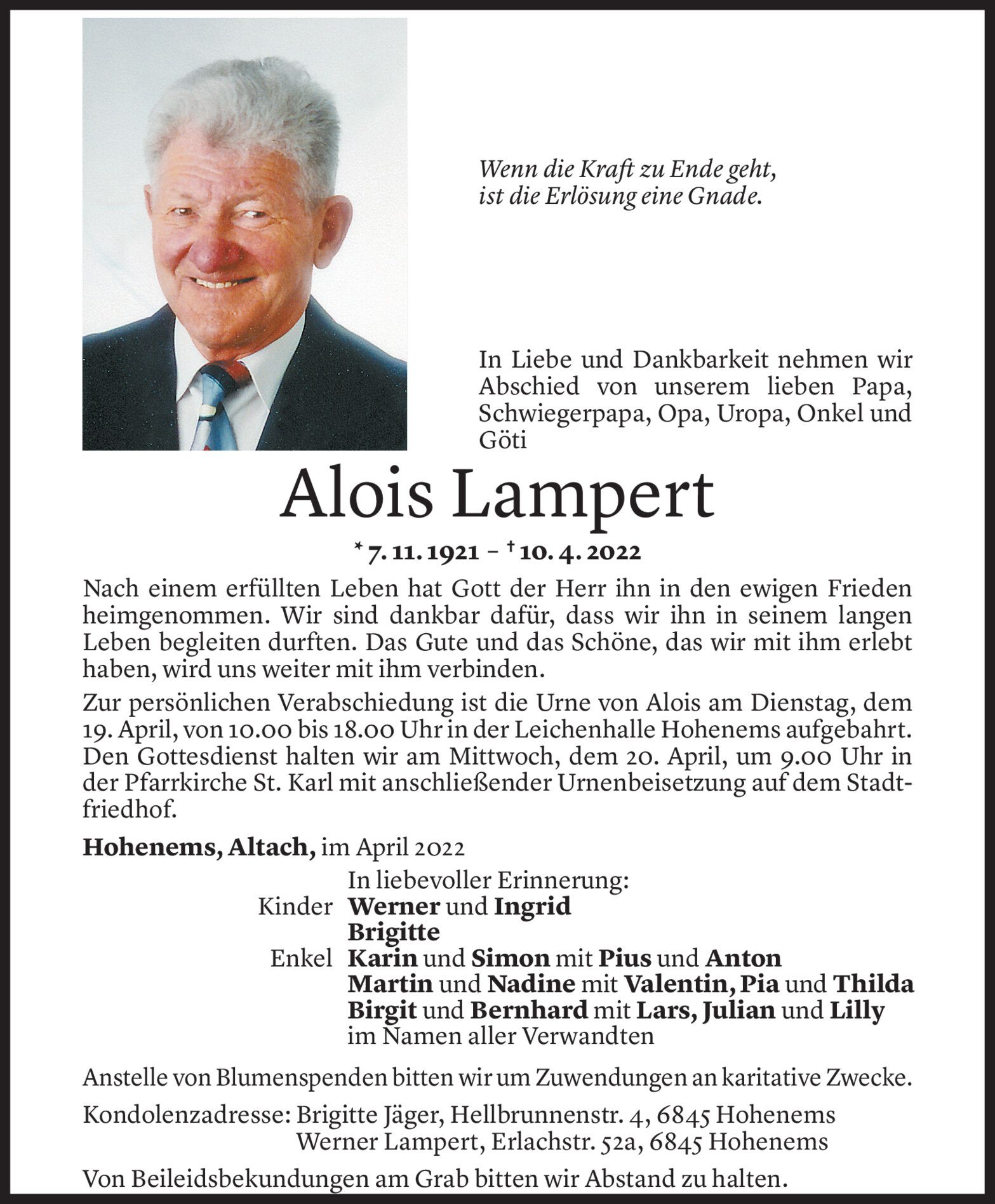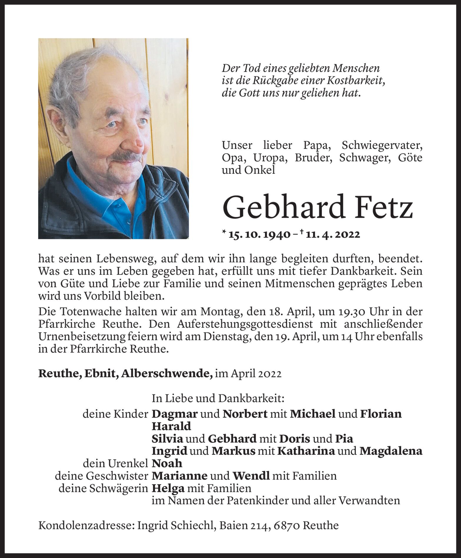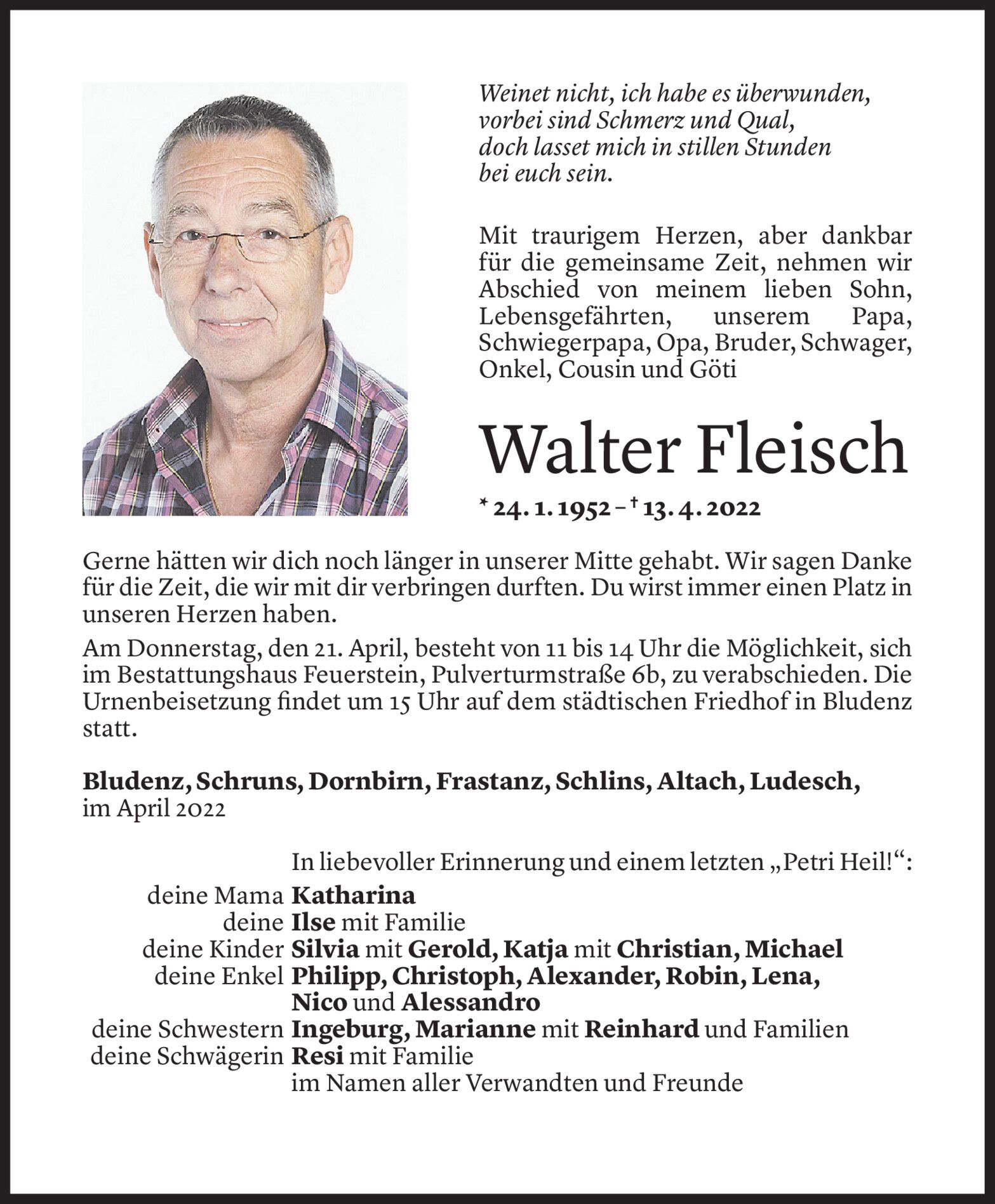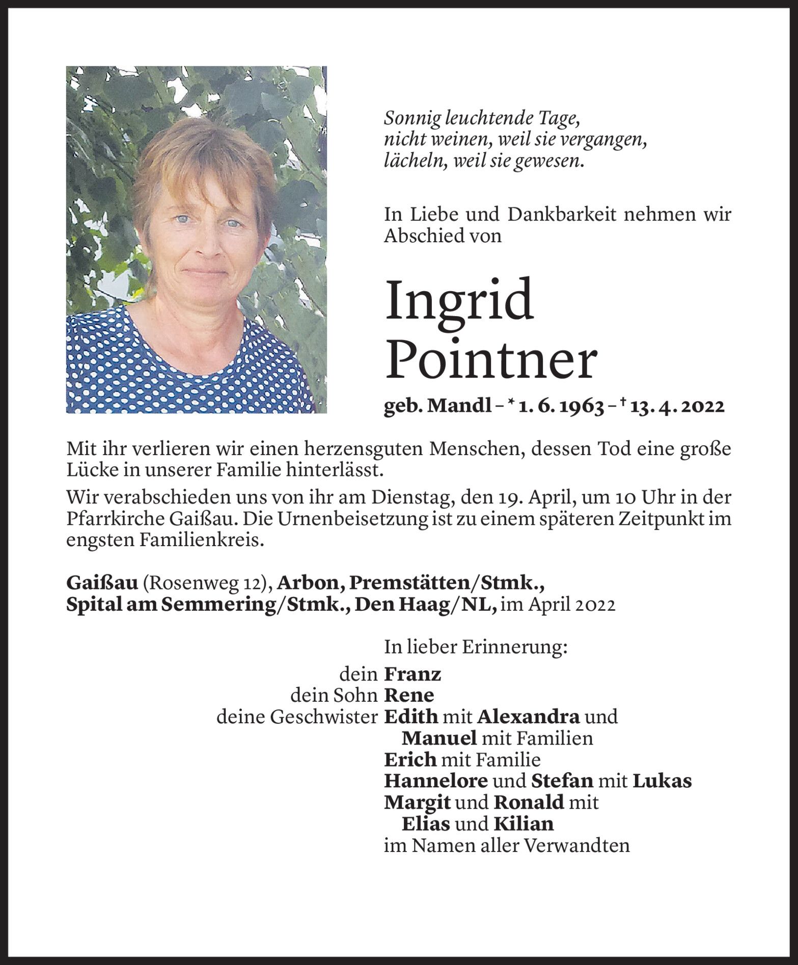 Samstag 16. April 2022