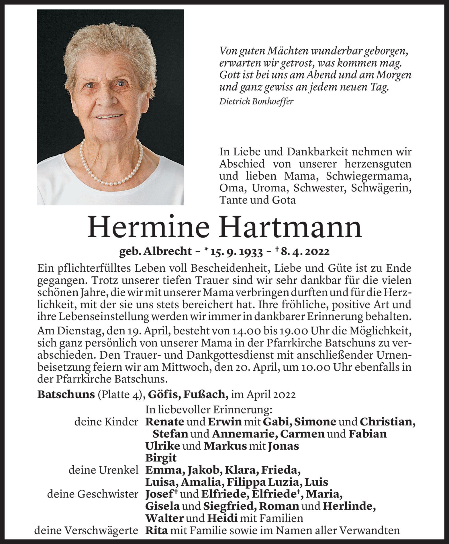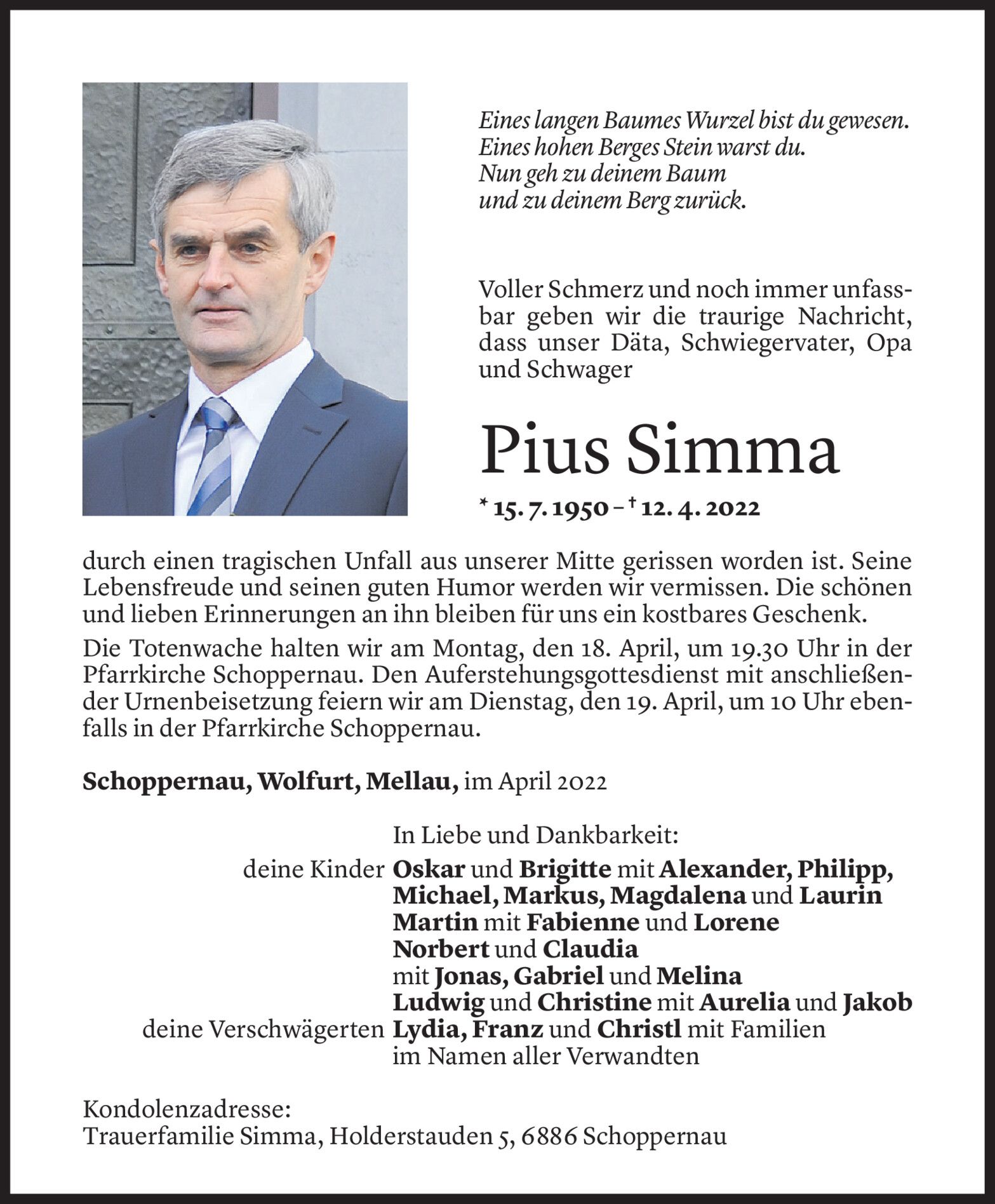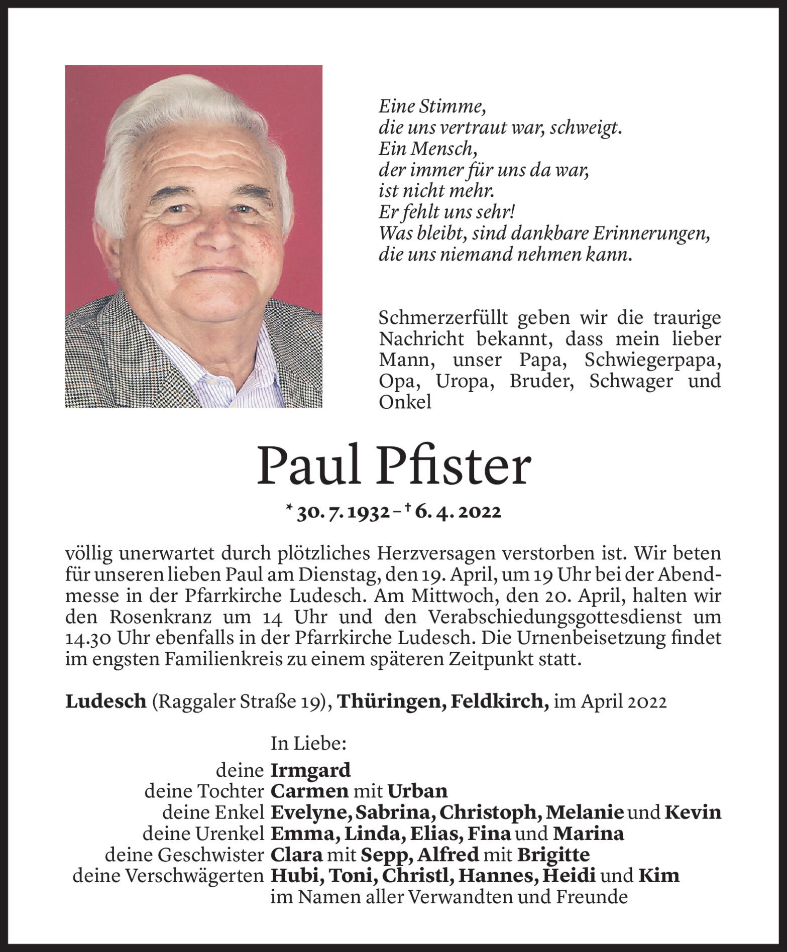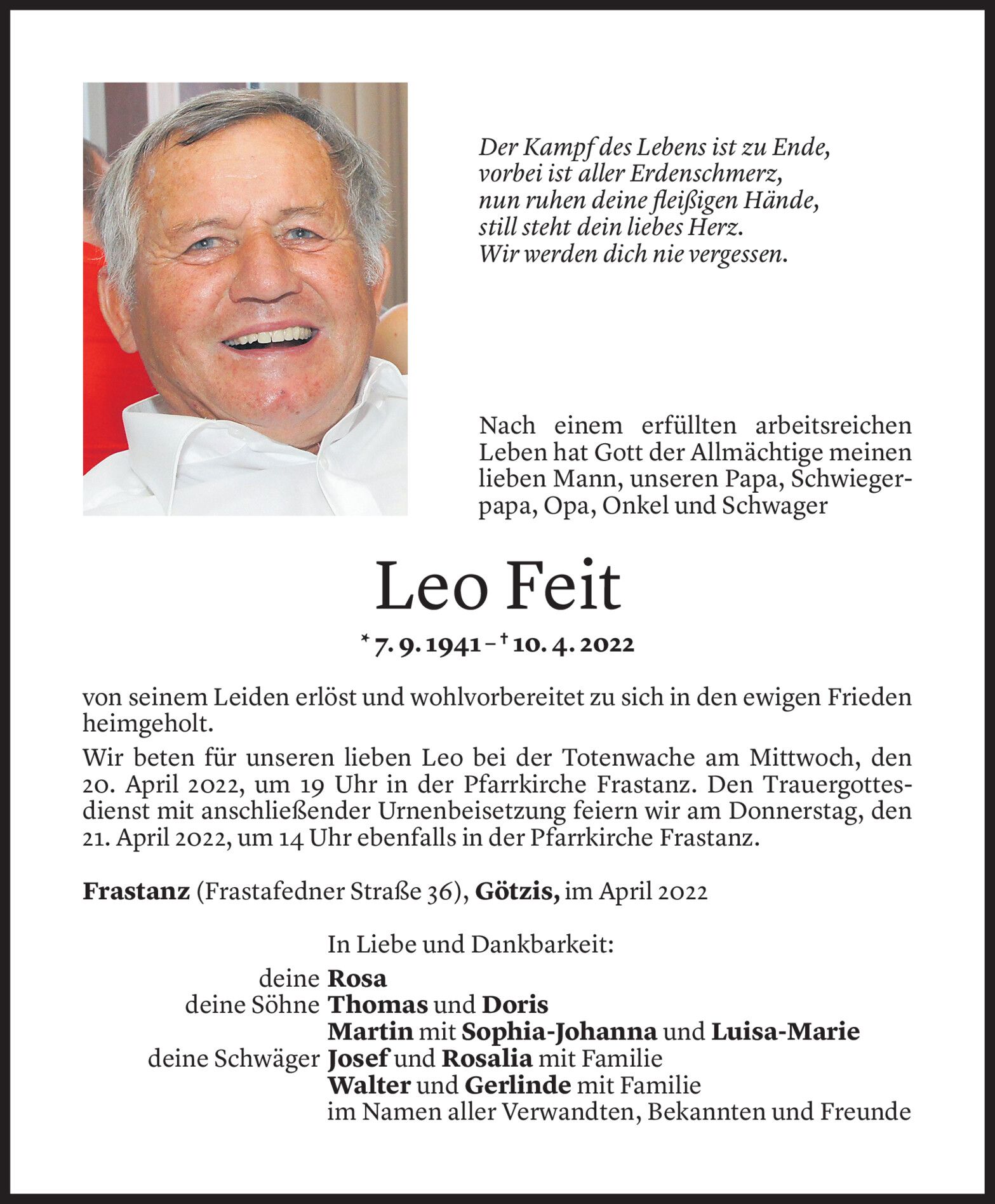 Samstag 16. April 2022