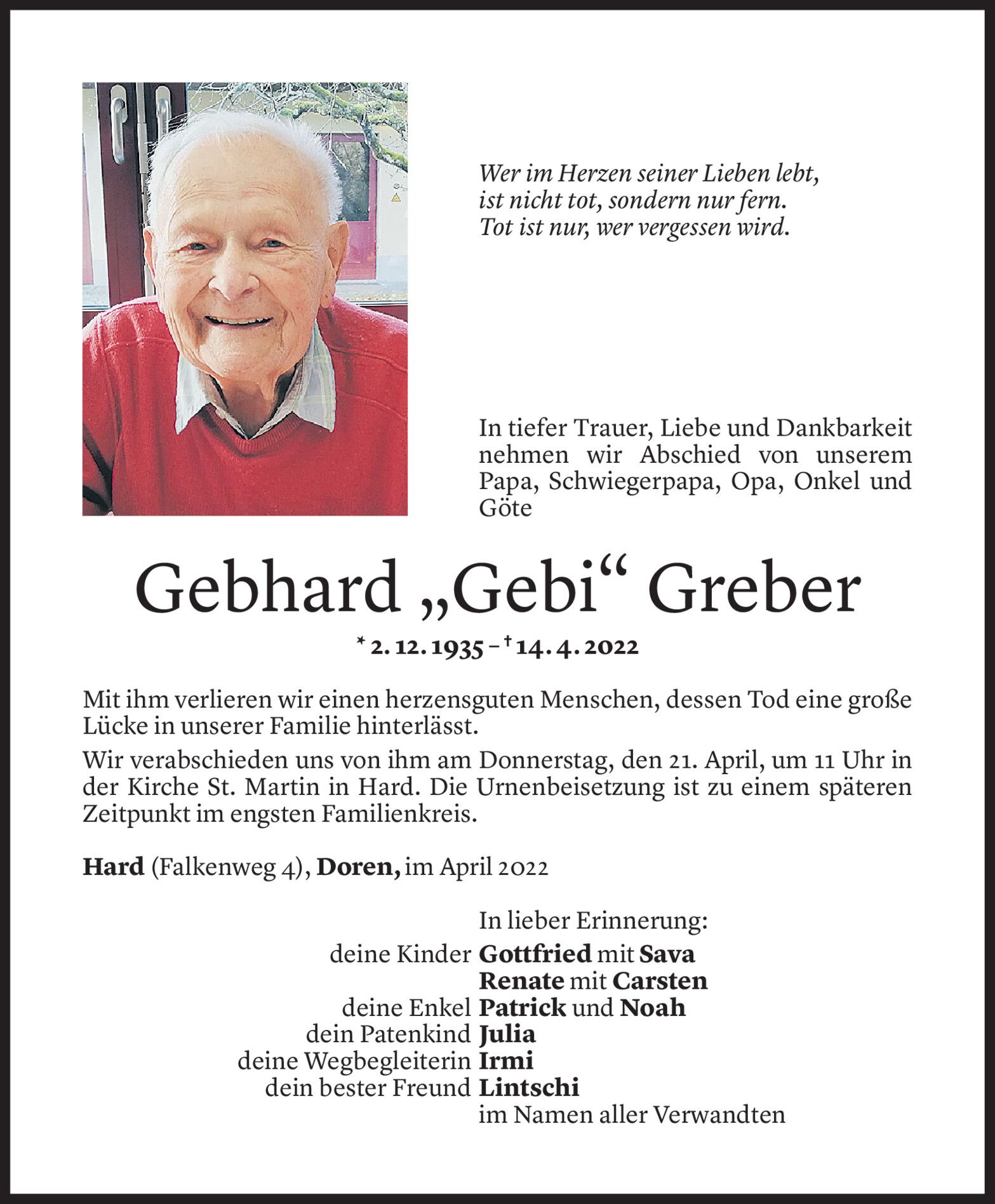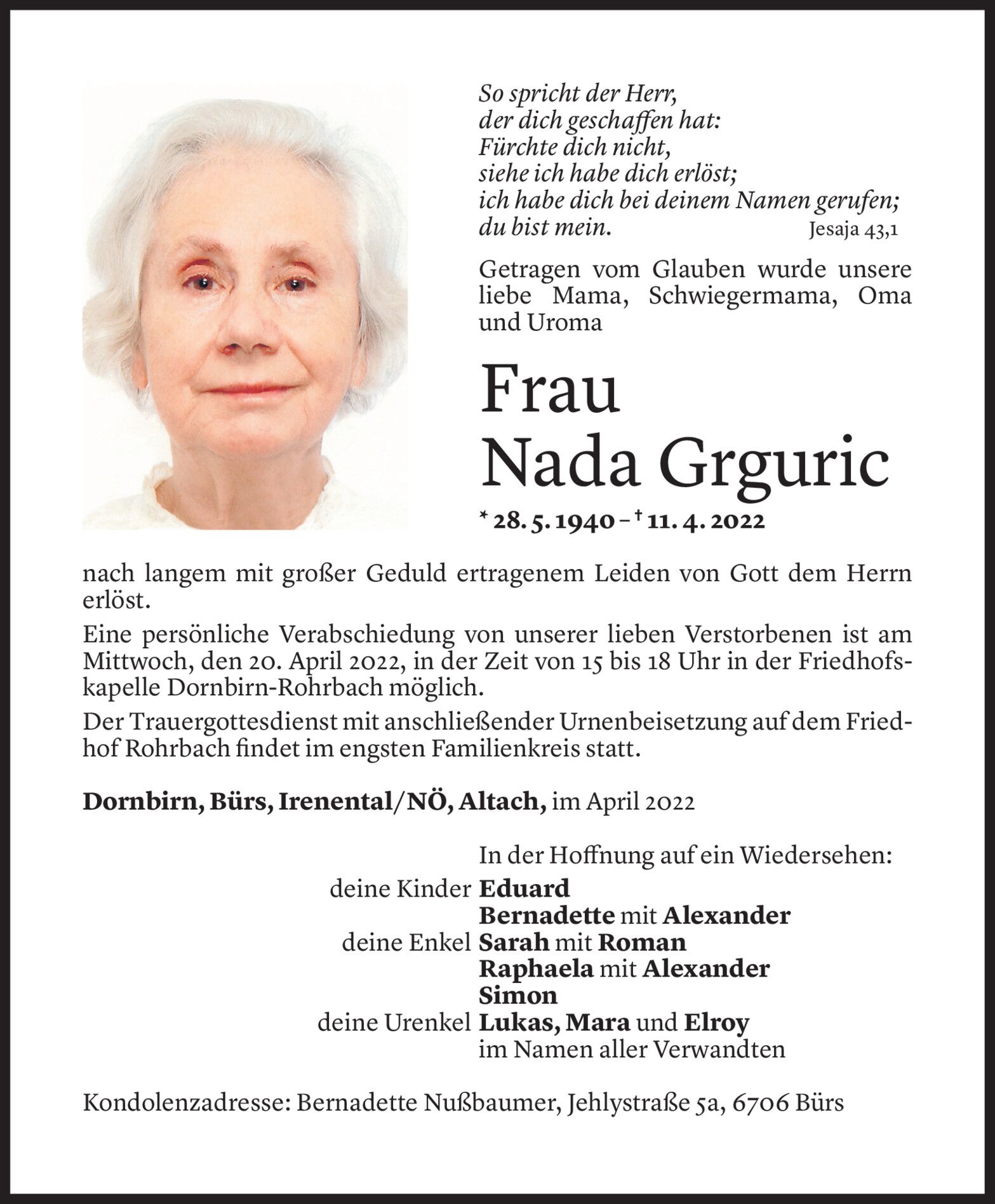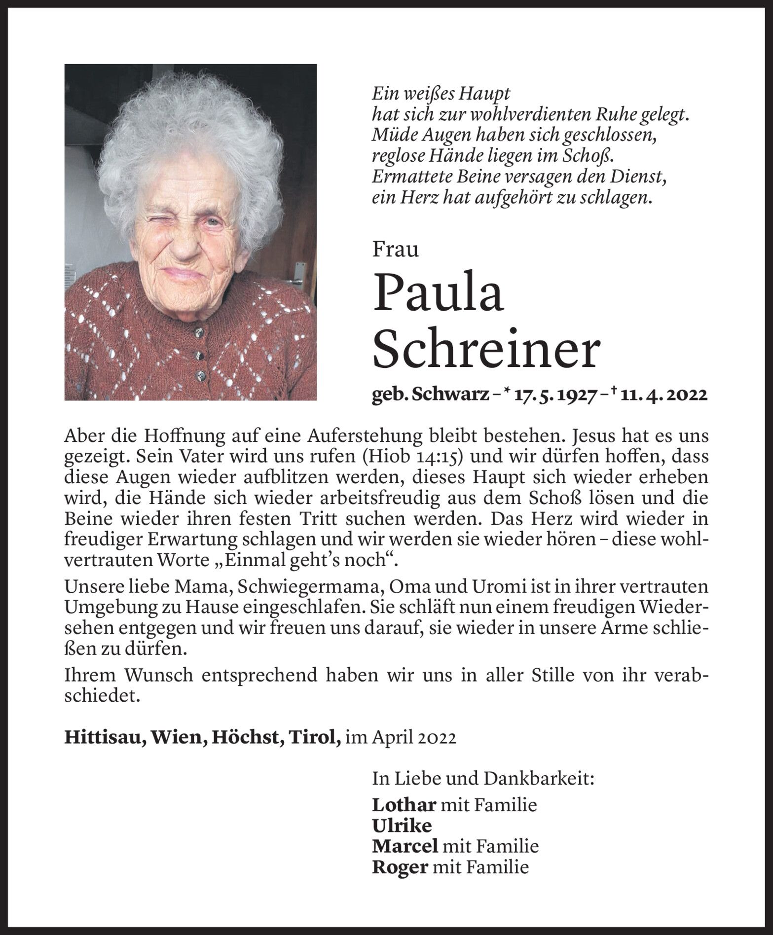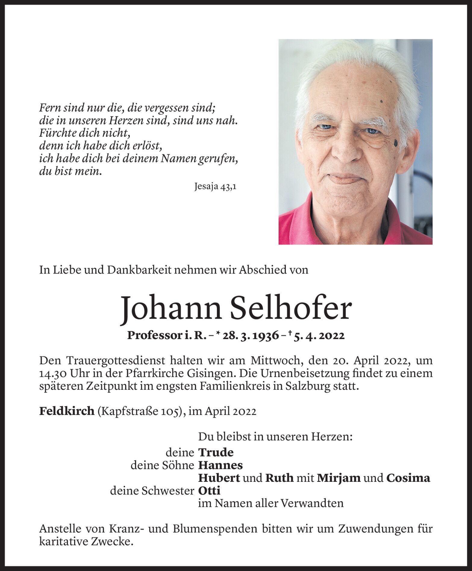 Samstag 16. April 2022