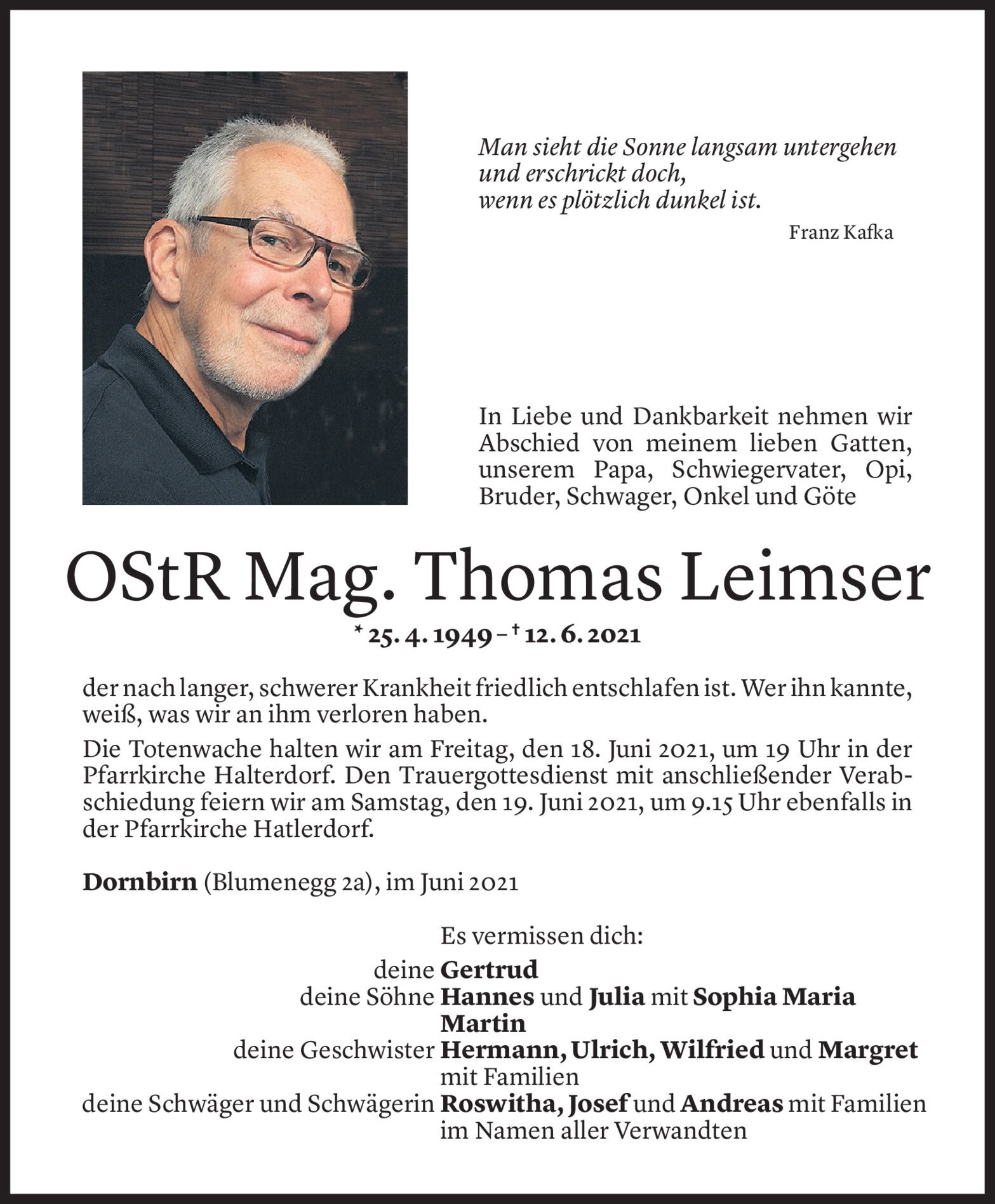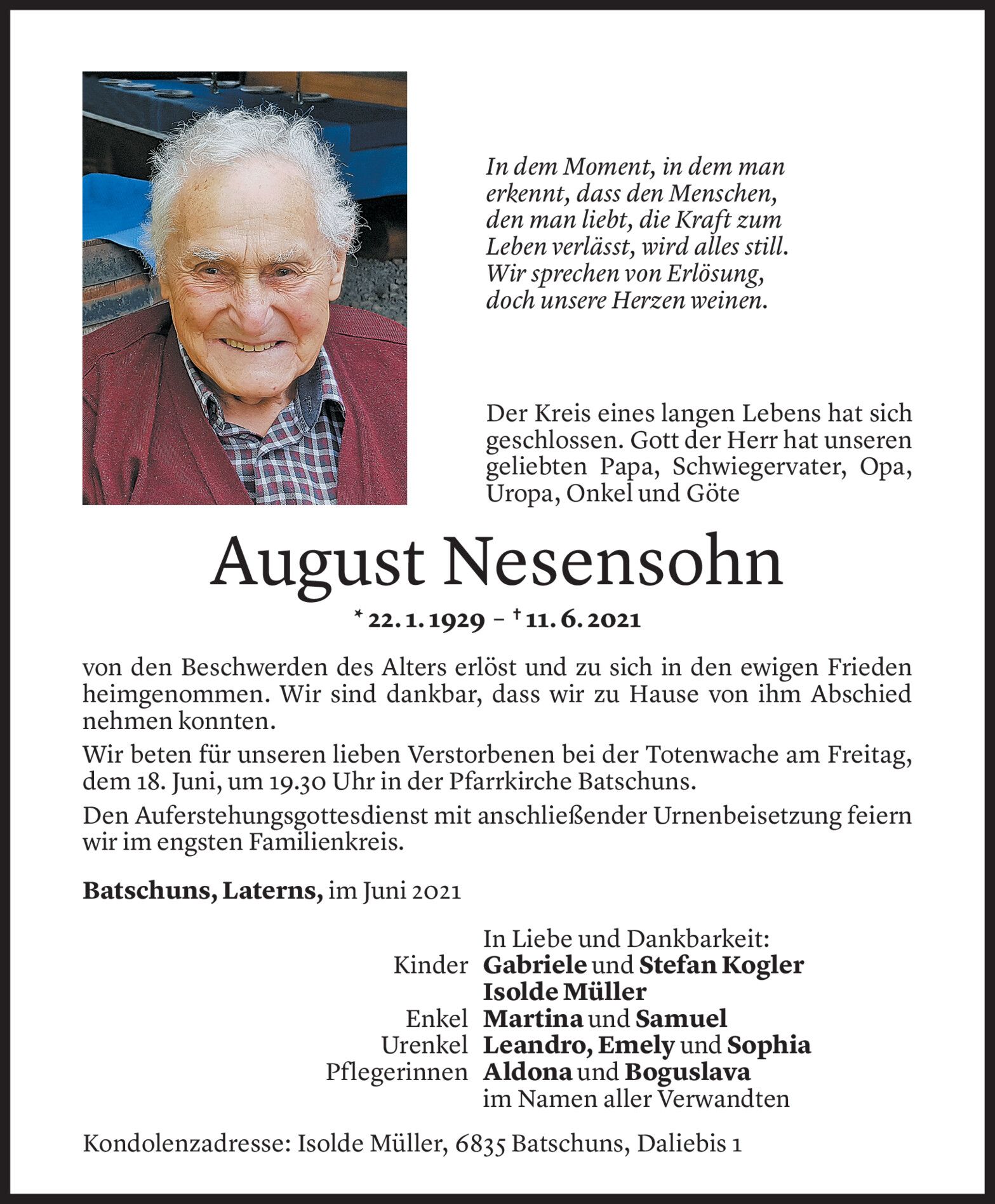 Mittwoch 16. Juni 2021