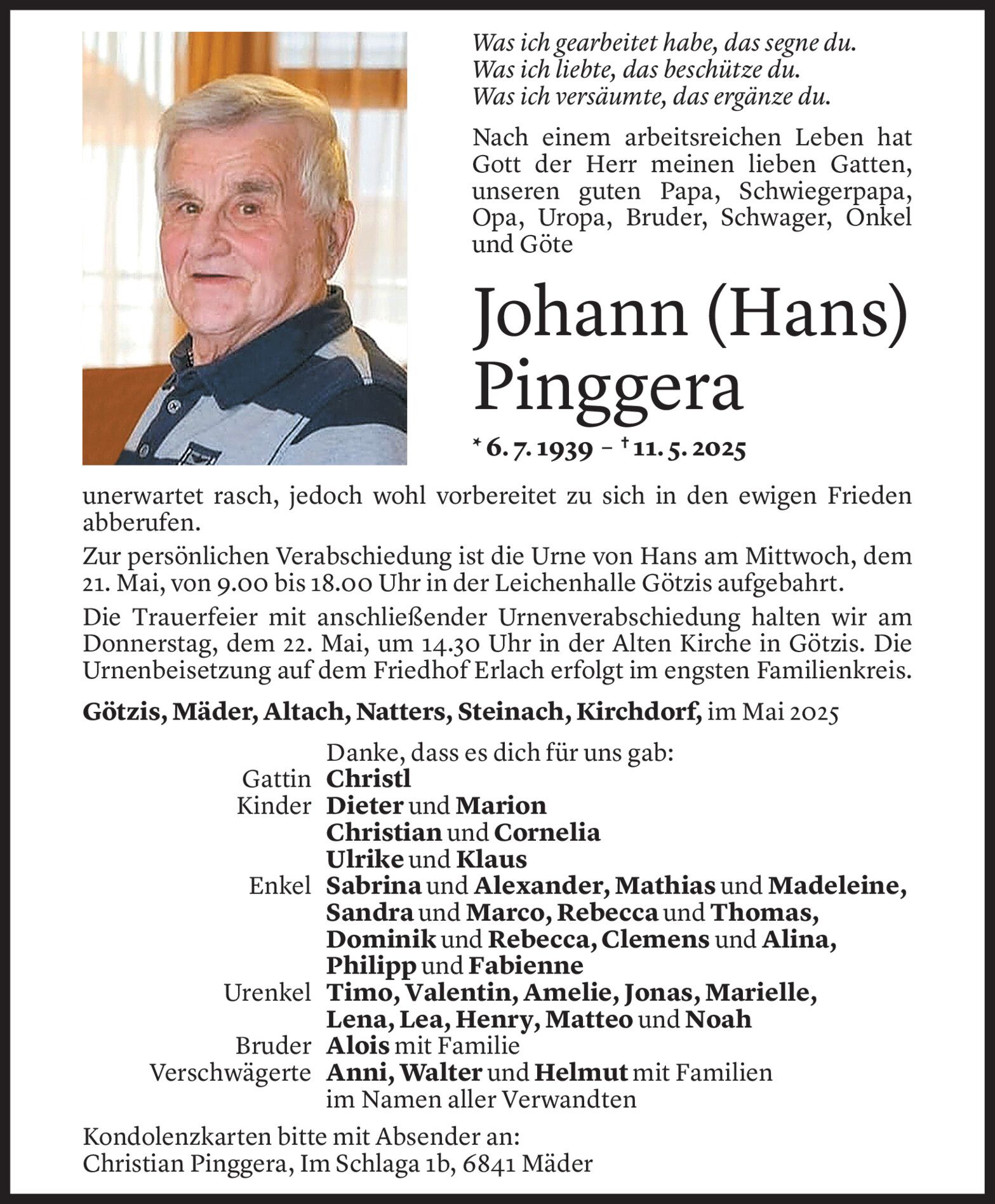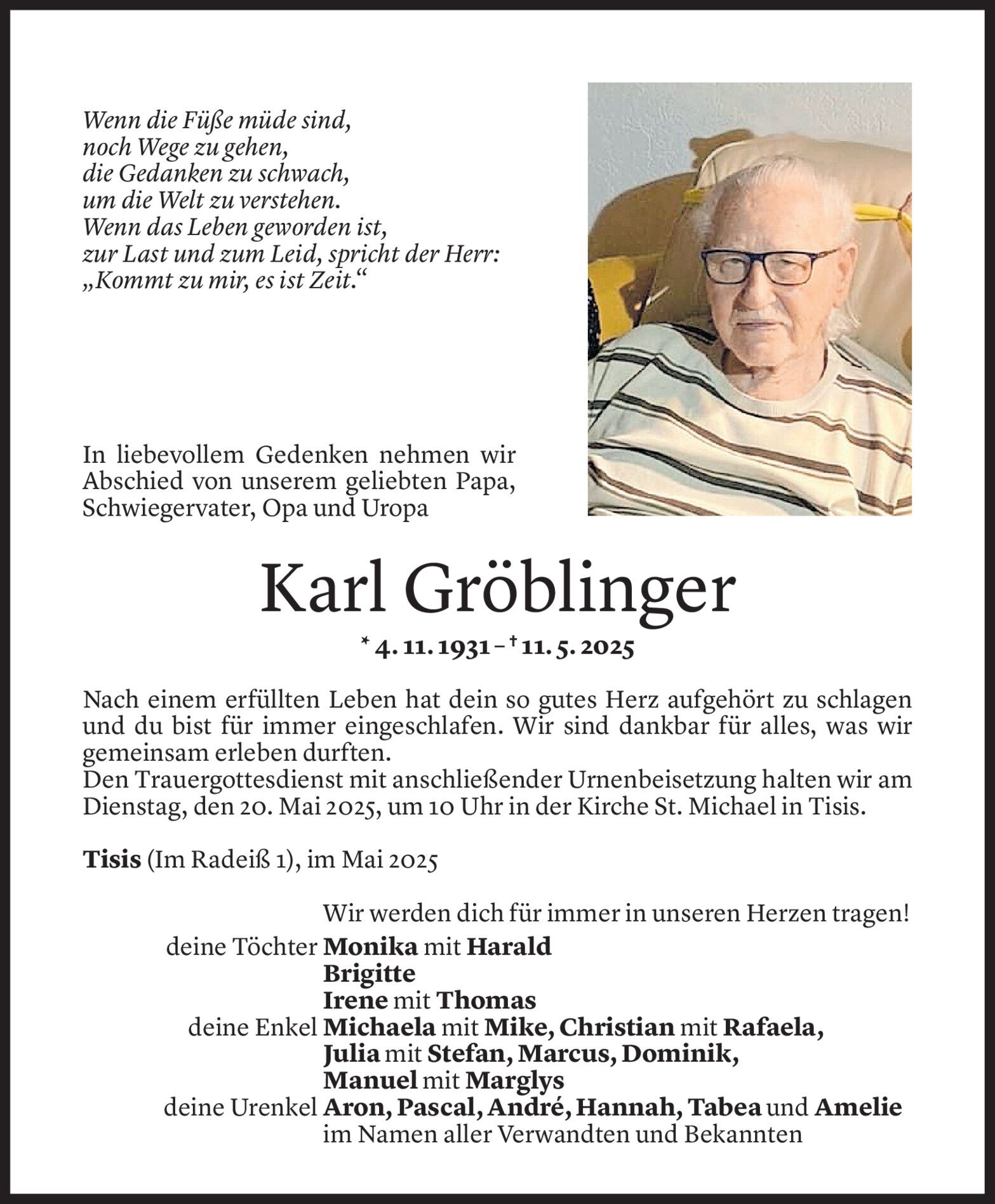 Samstag 17. Mai 2025
