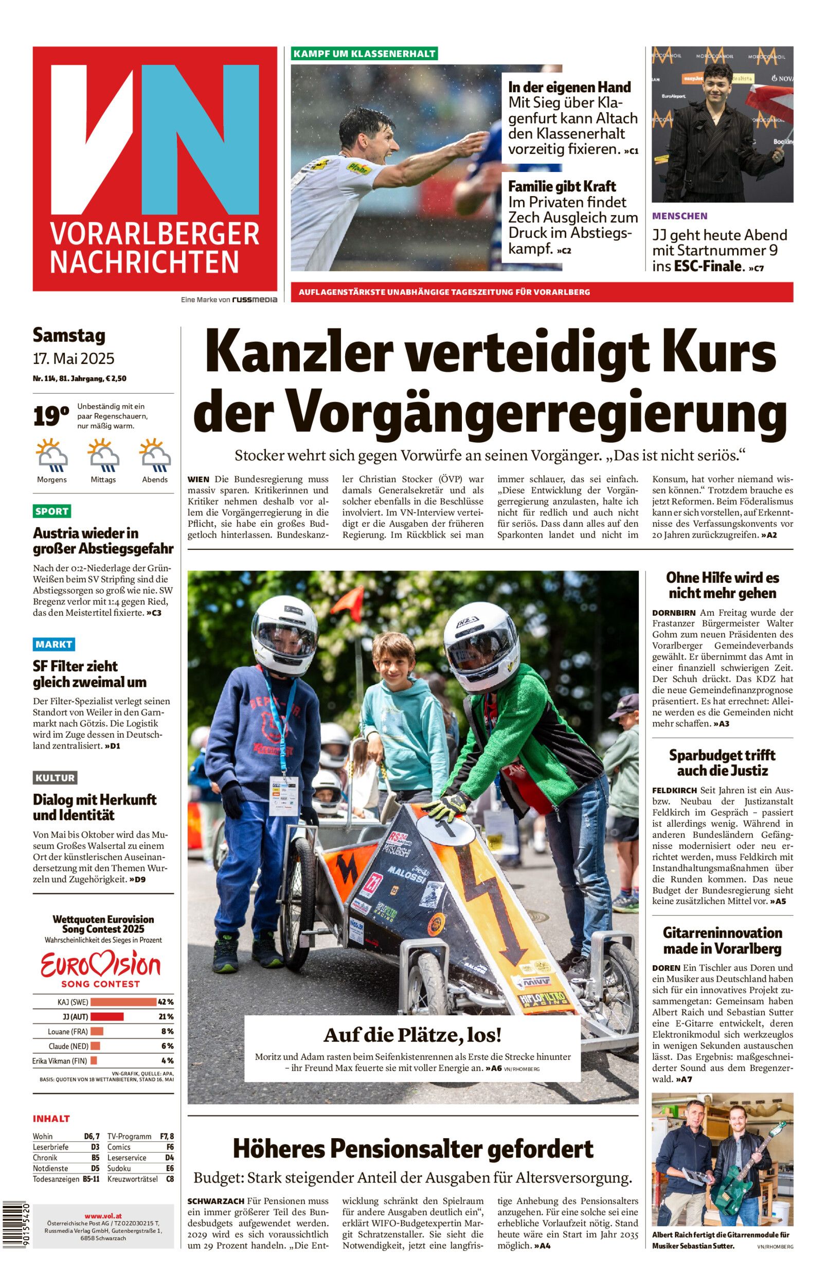 Österreich liegt vor dem ESC-Finale weiter auf Platz 2