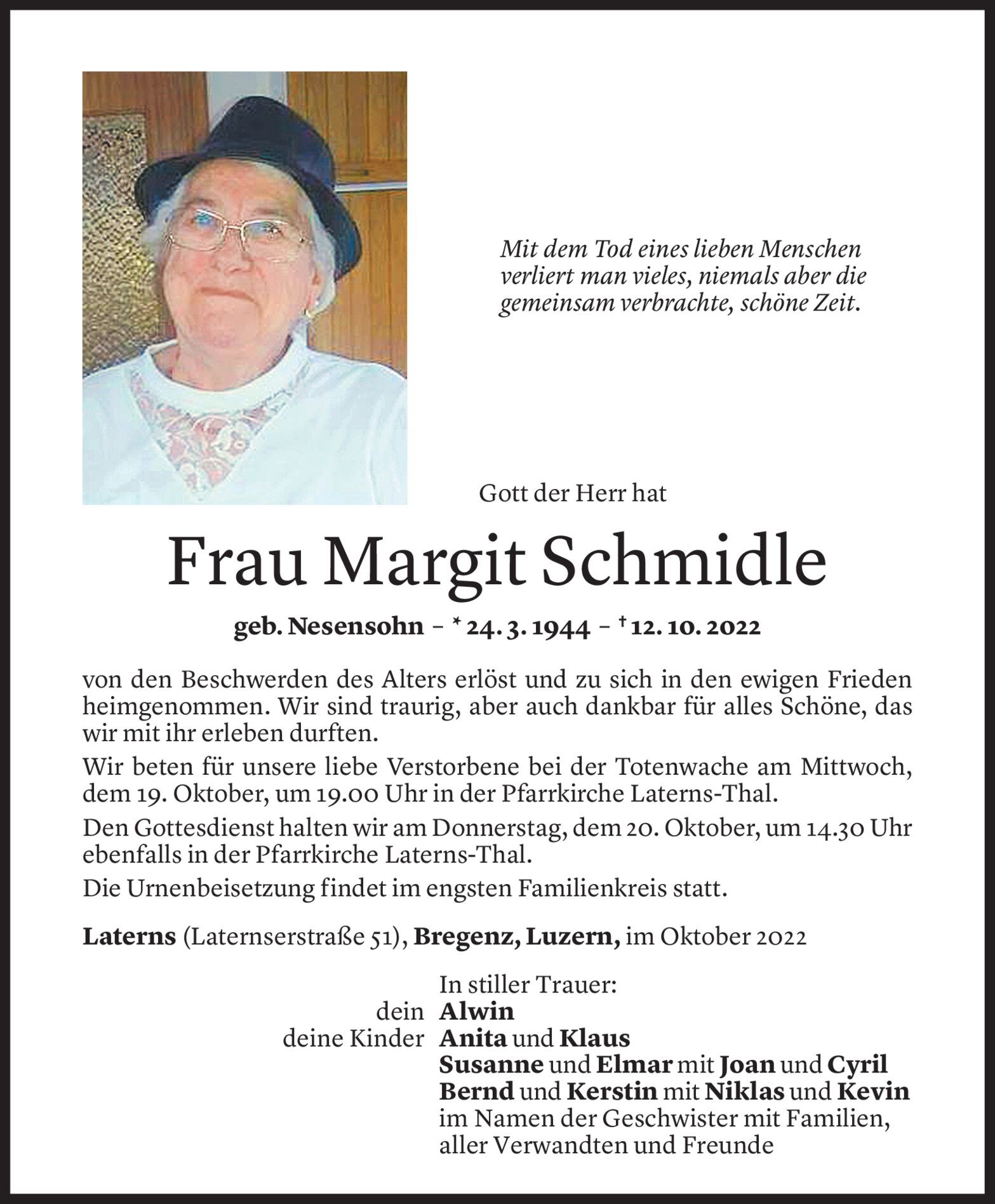 Montag 17. Oktober 2022