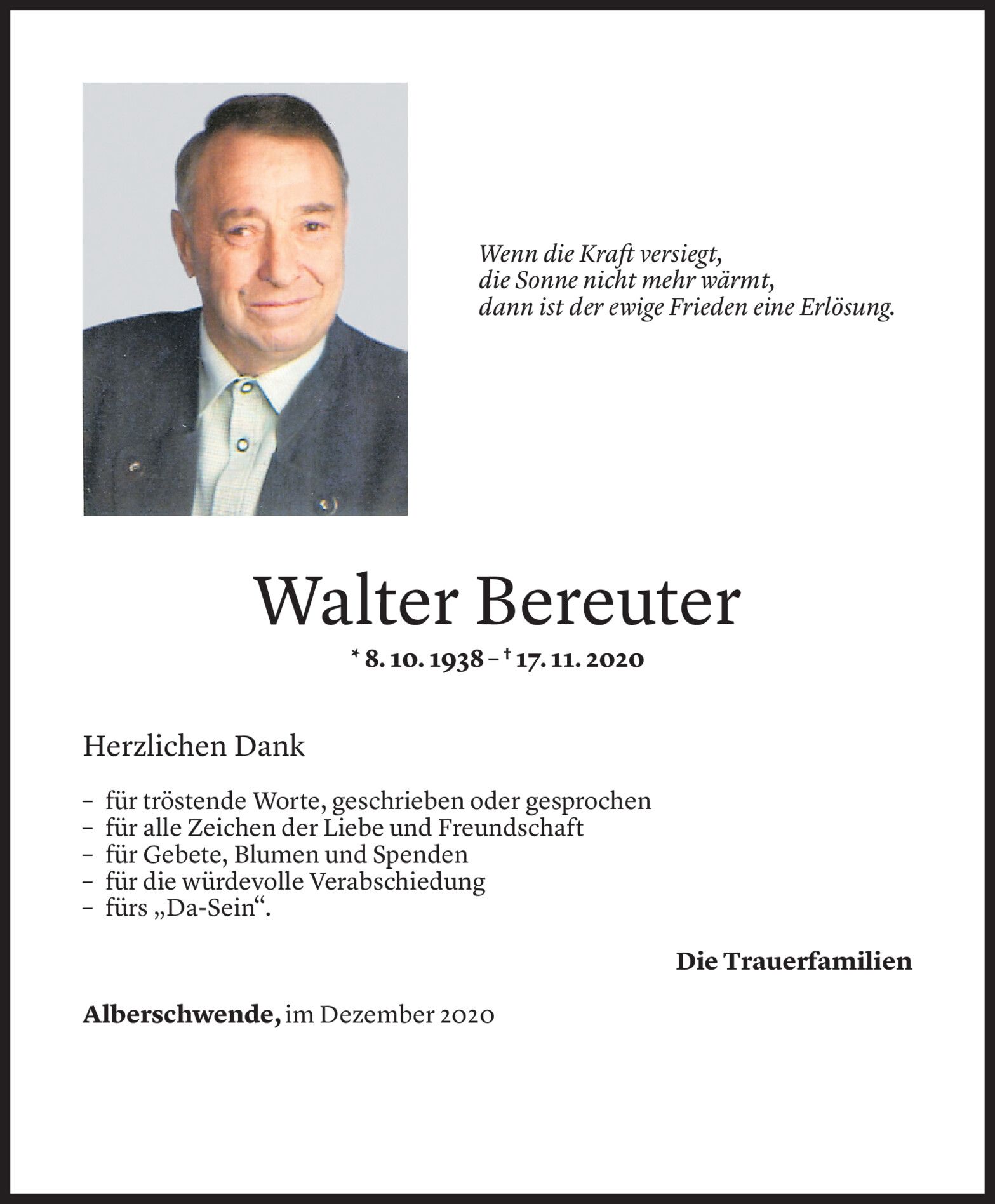 Donnerstag 17. Dezember 2020