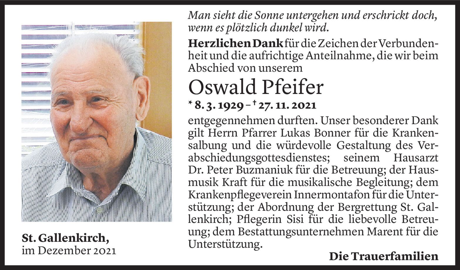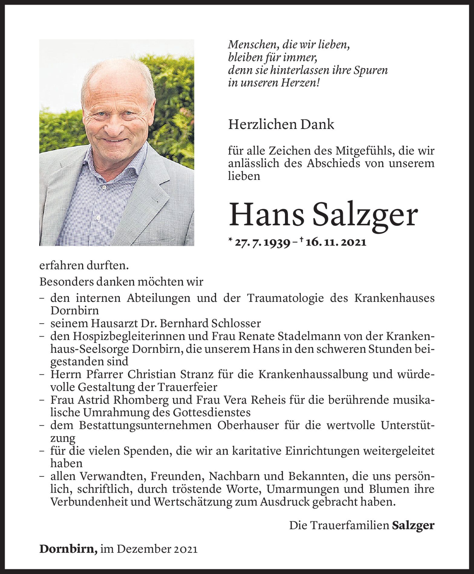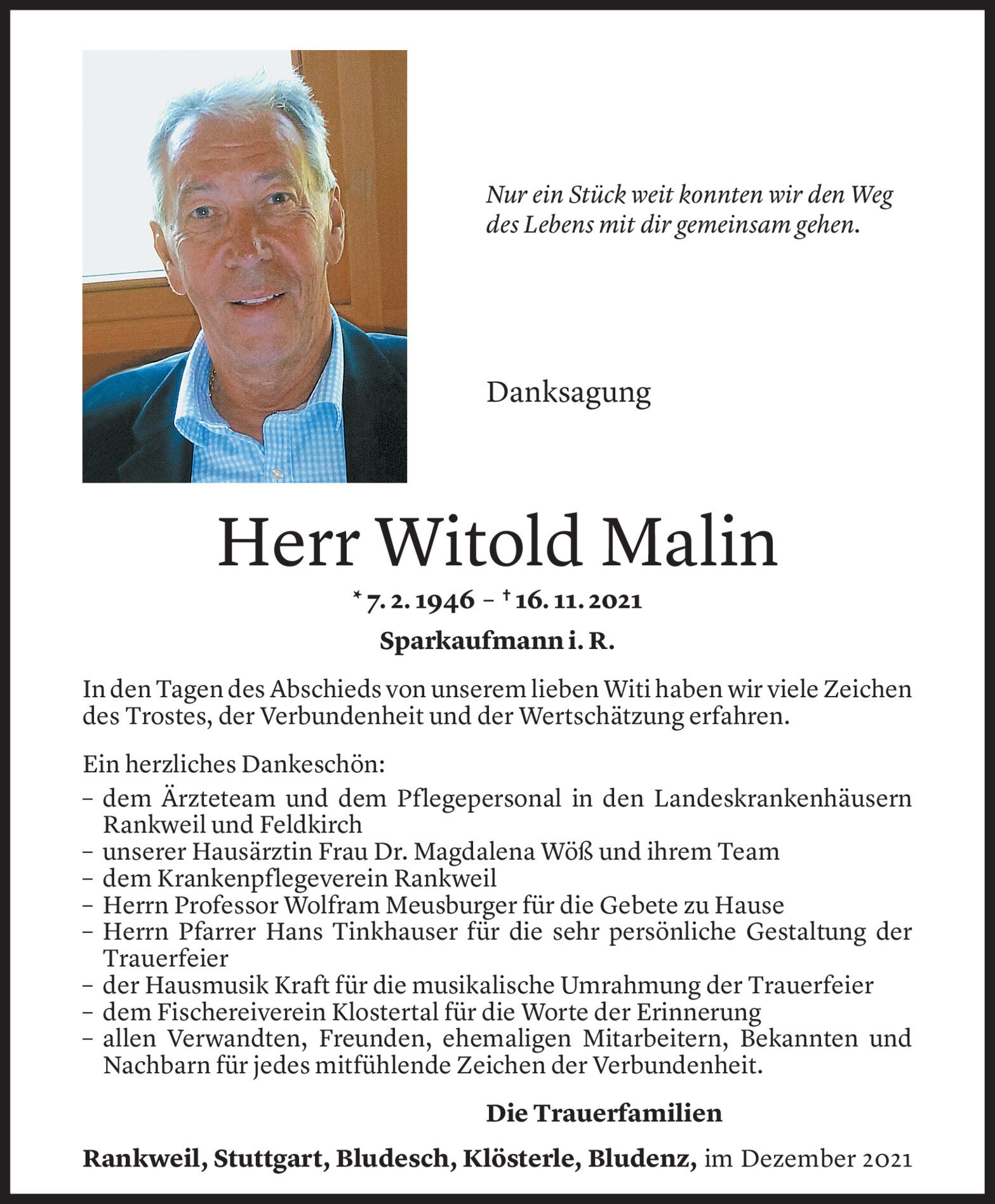 Dank an das Ärzte- und Pflegepersonal des LKH-Feldkirch