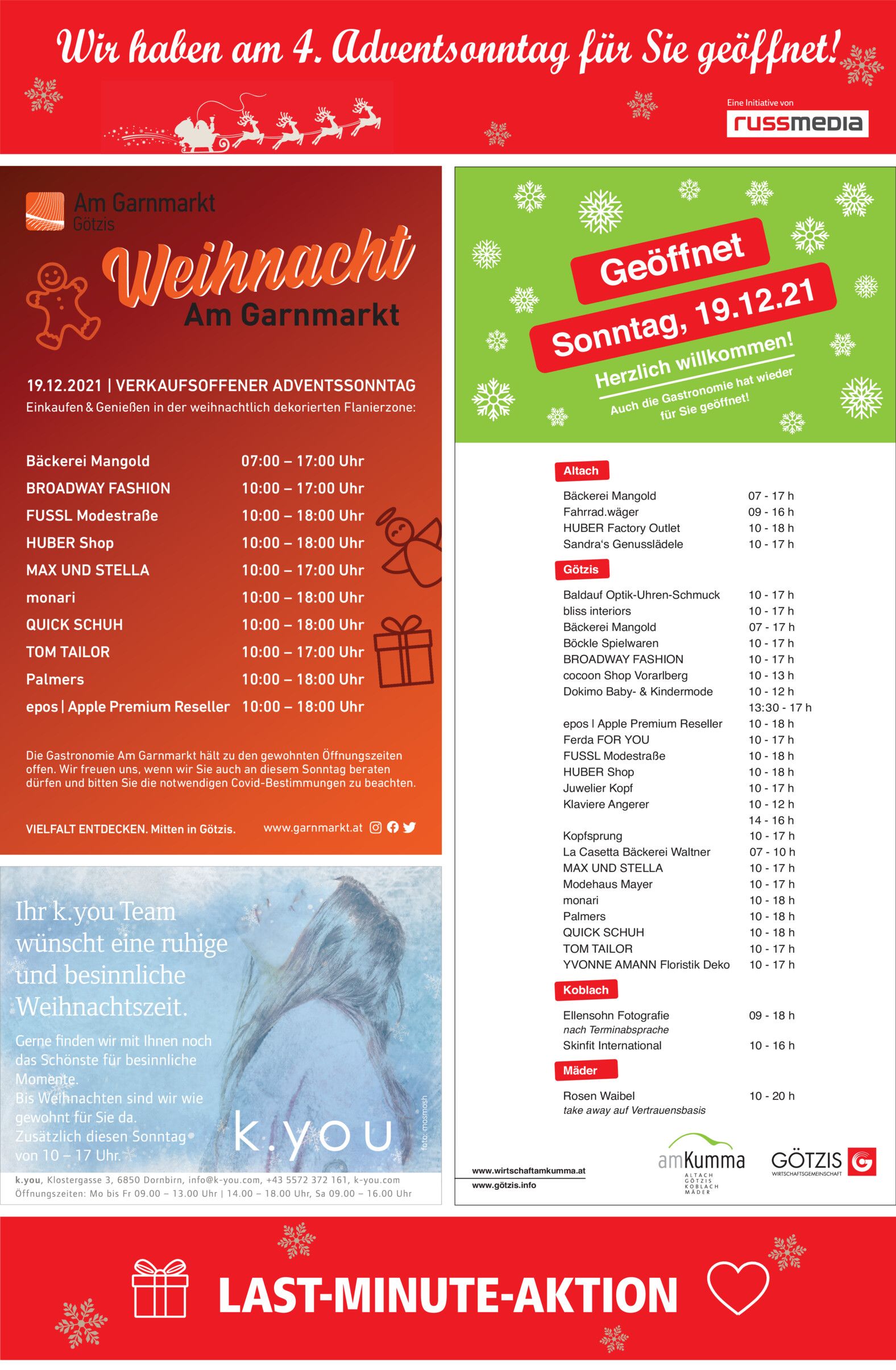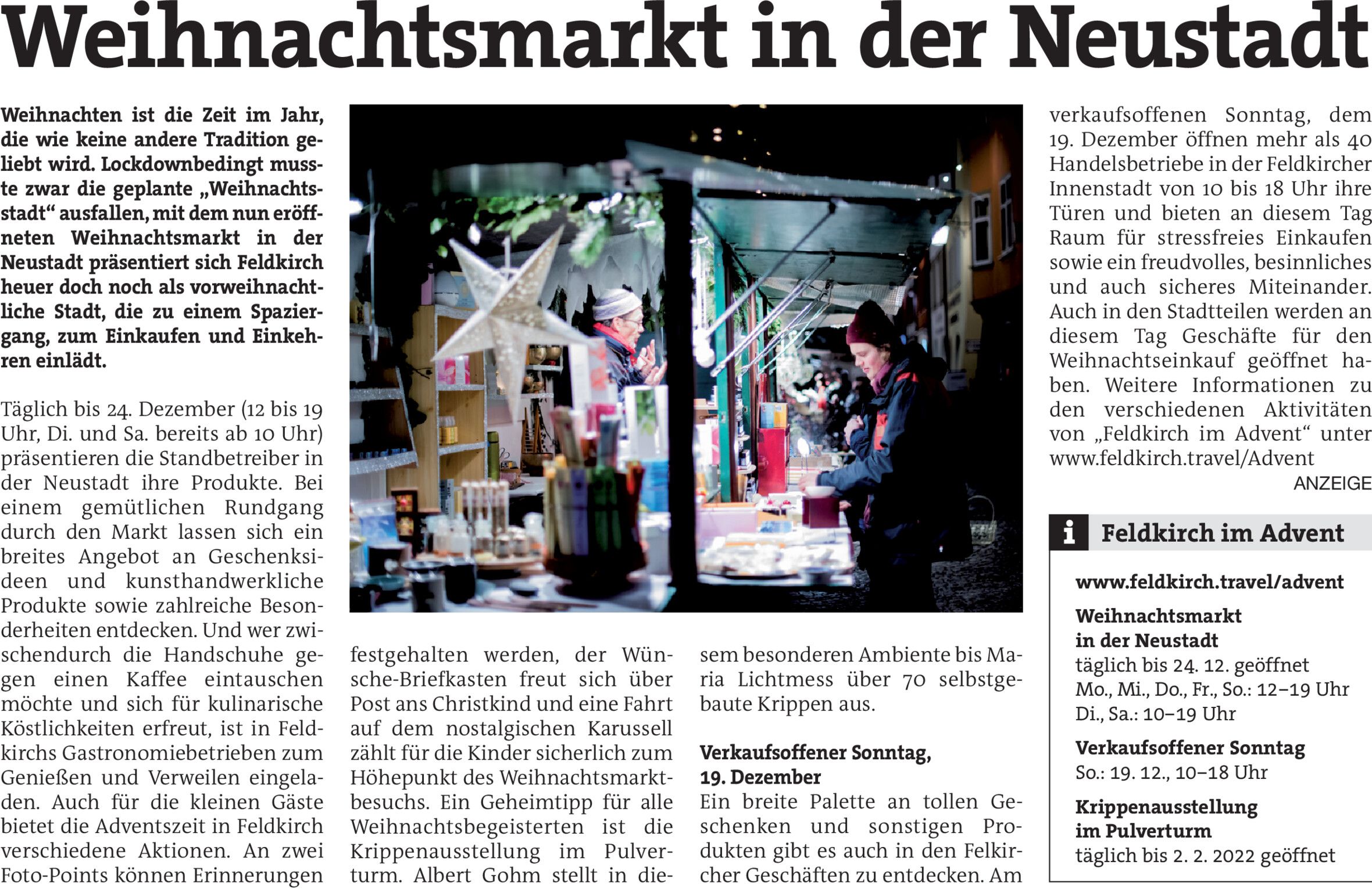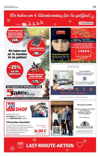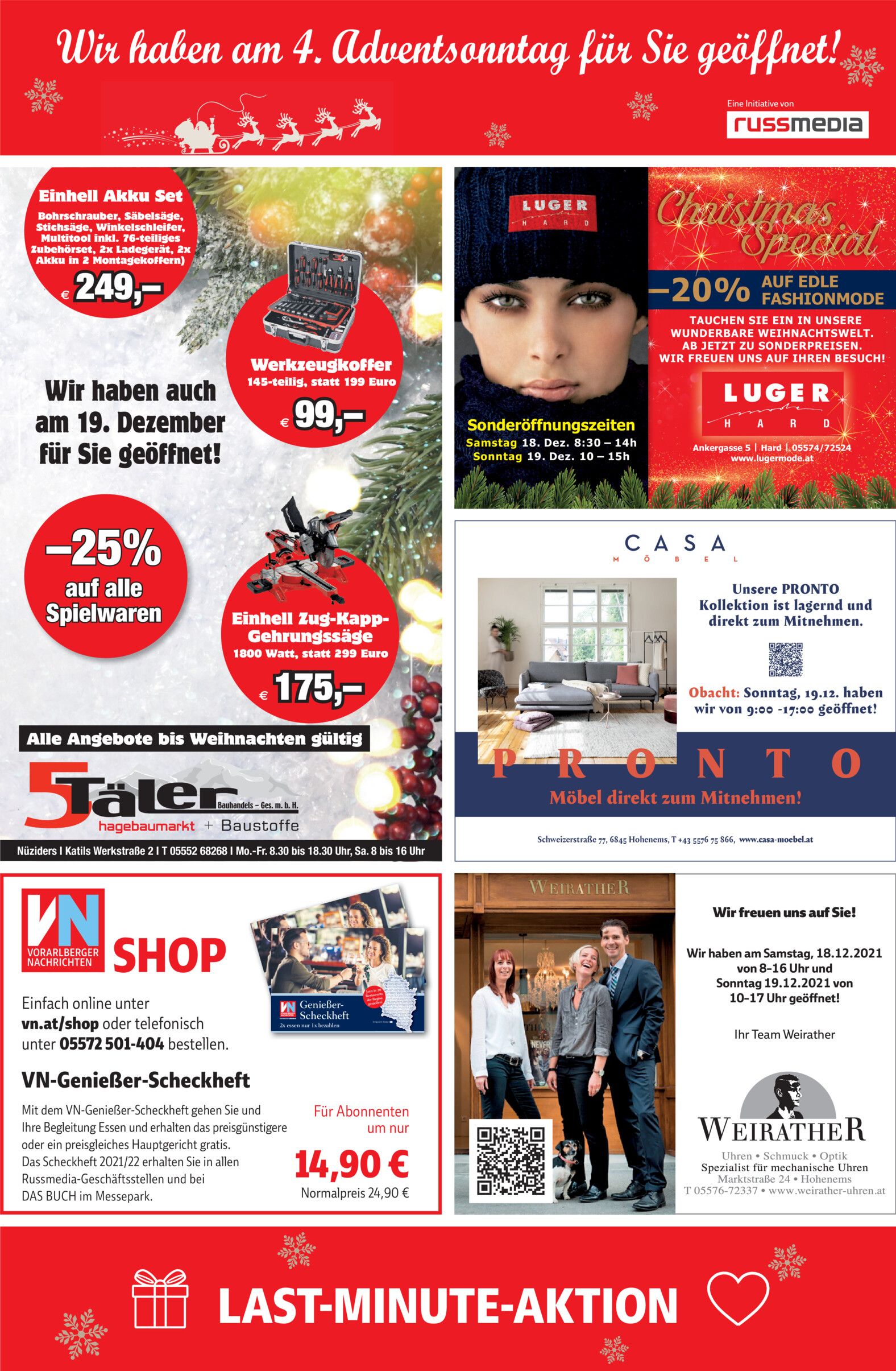 Großes Angebot am Adventwochenende in Hard.
