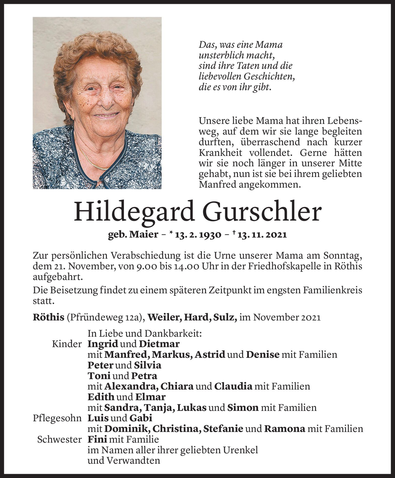 Donnerstag 18. November 2021