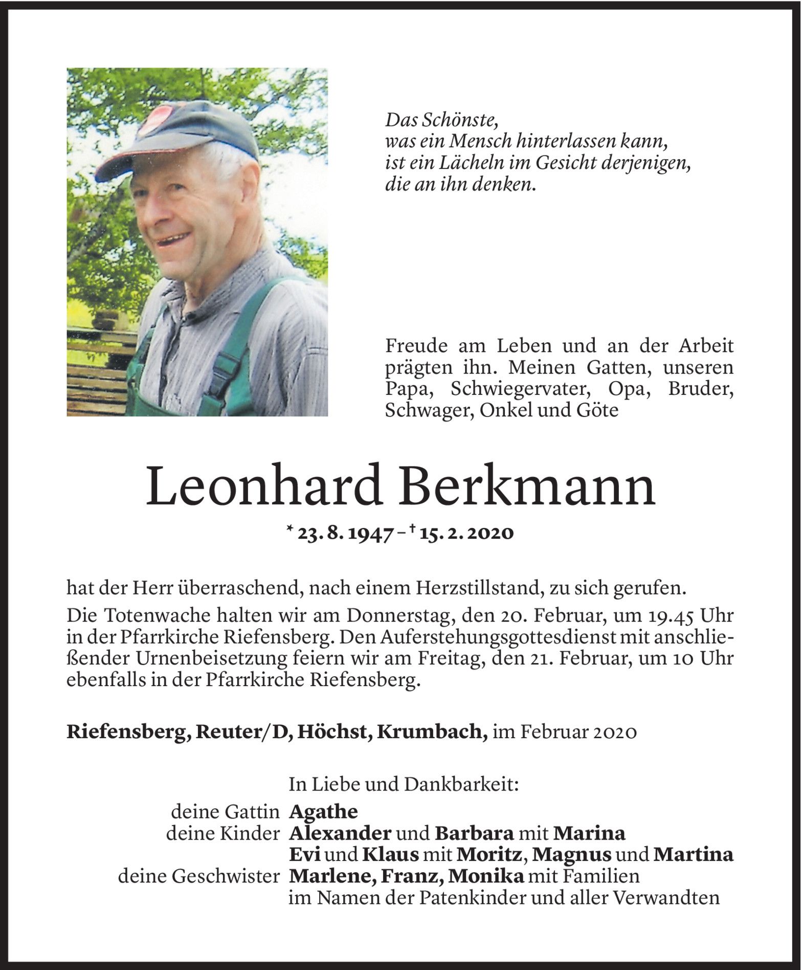 Mittwoch 19. Februar 2020