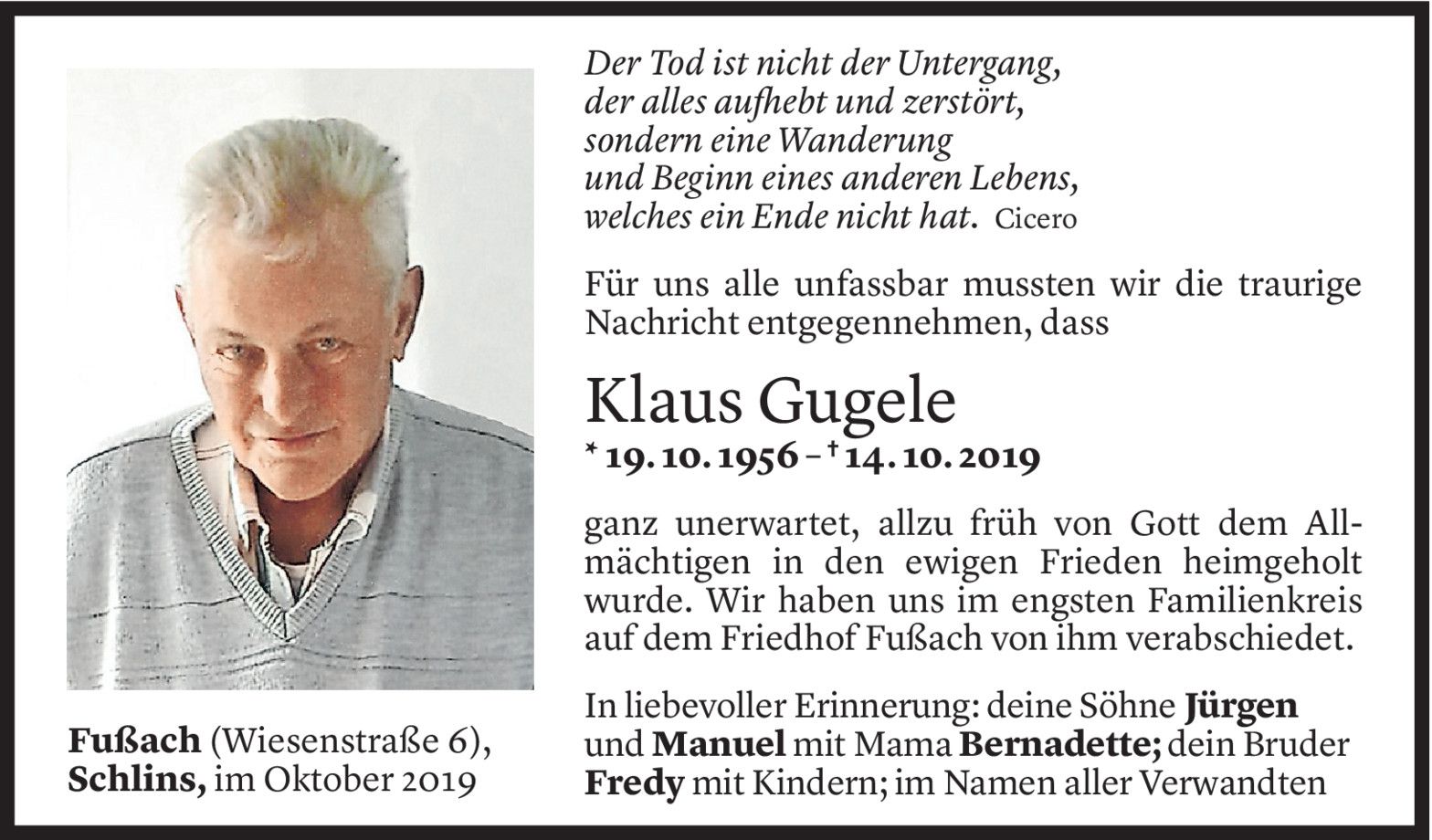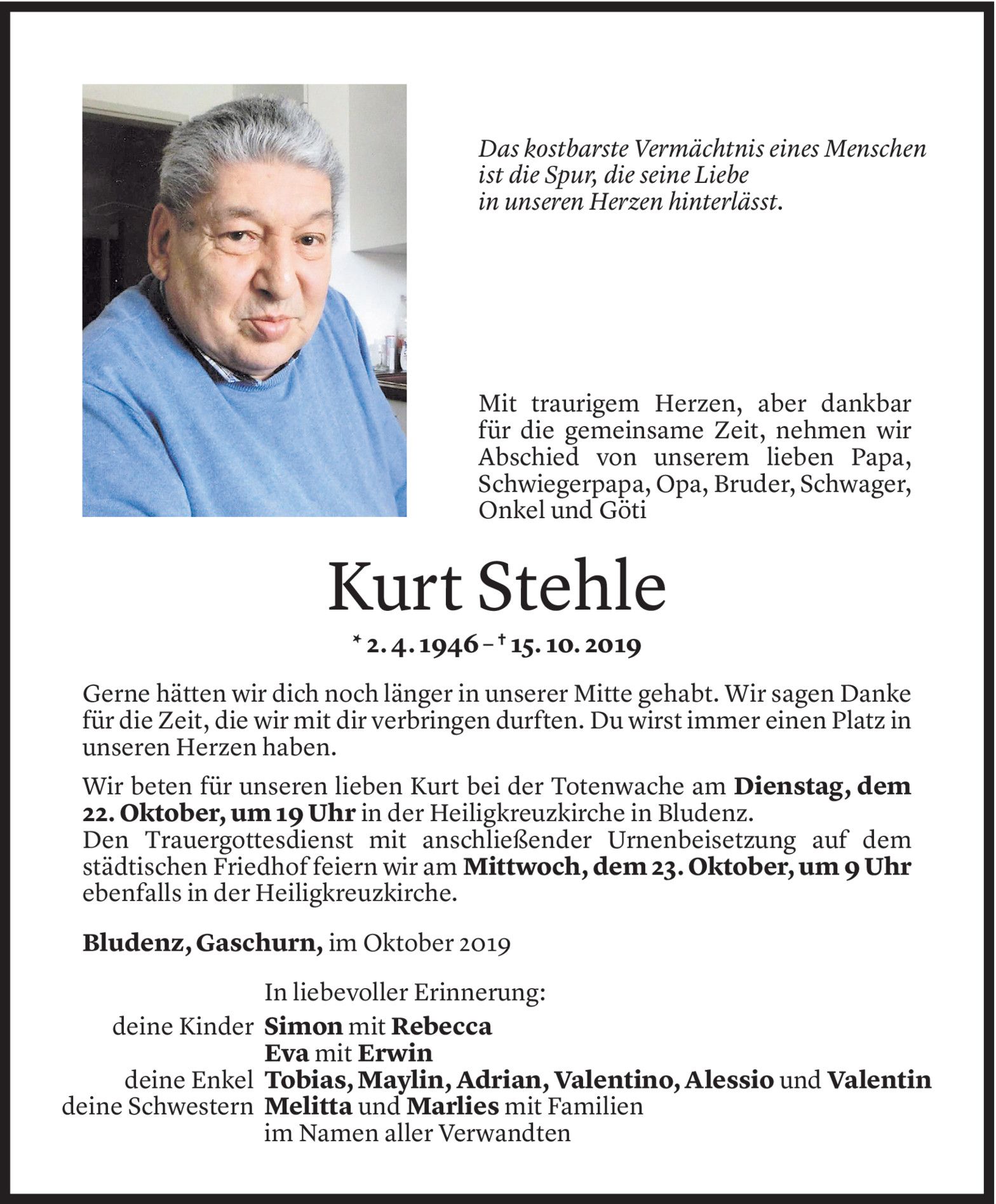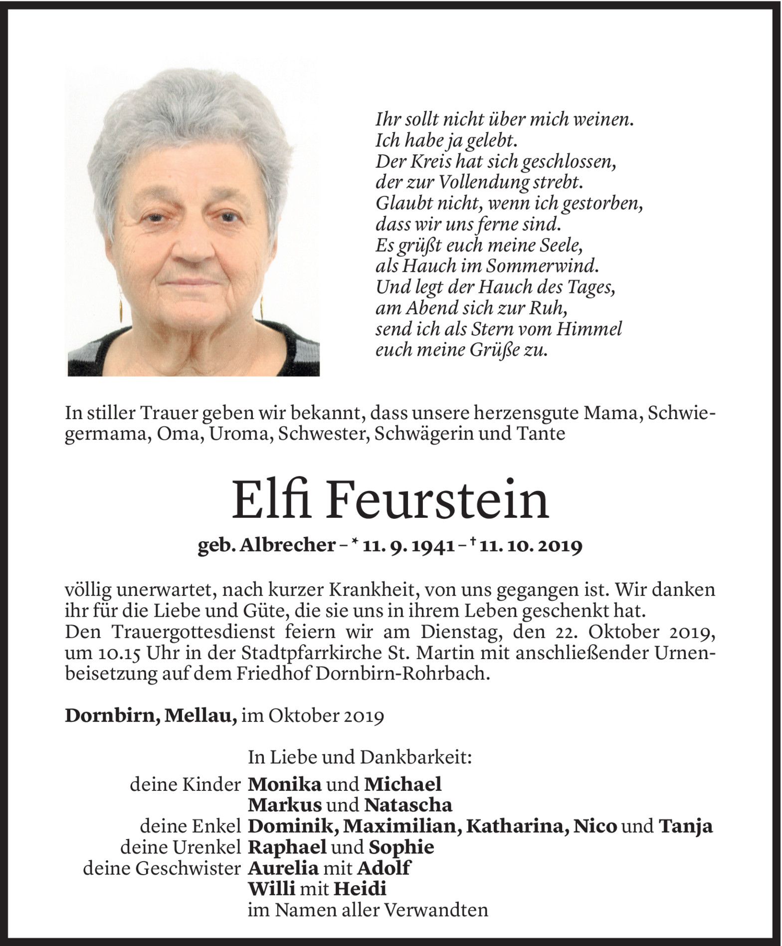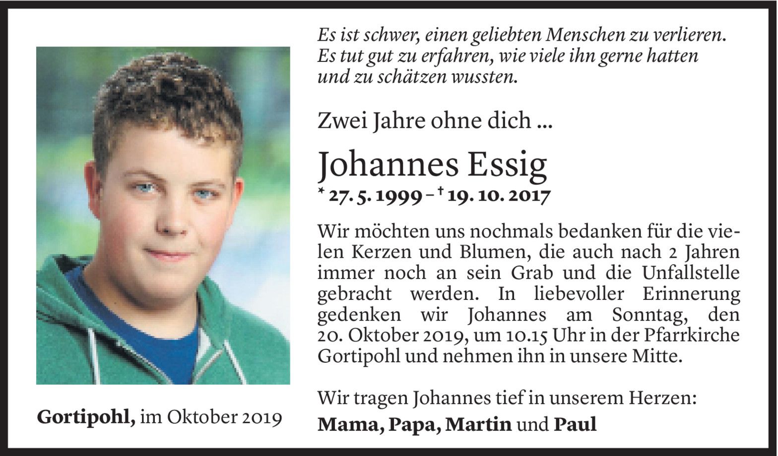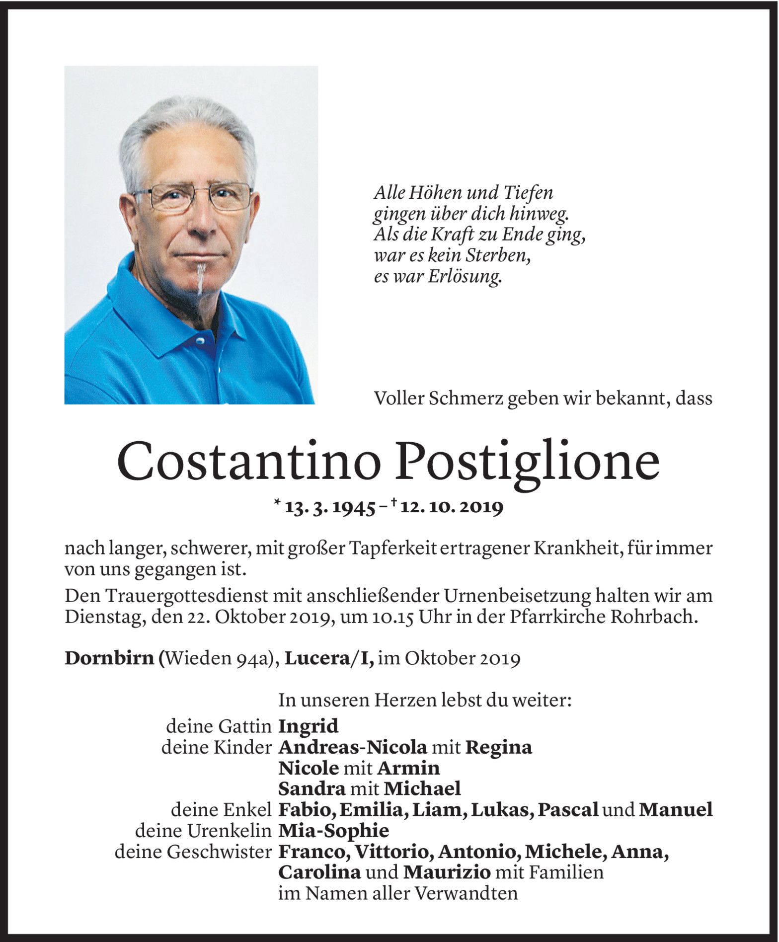 Samstag 19. Oktober 2019