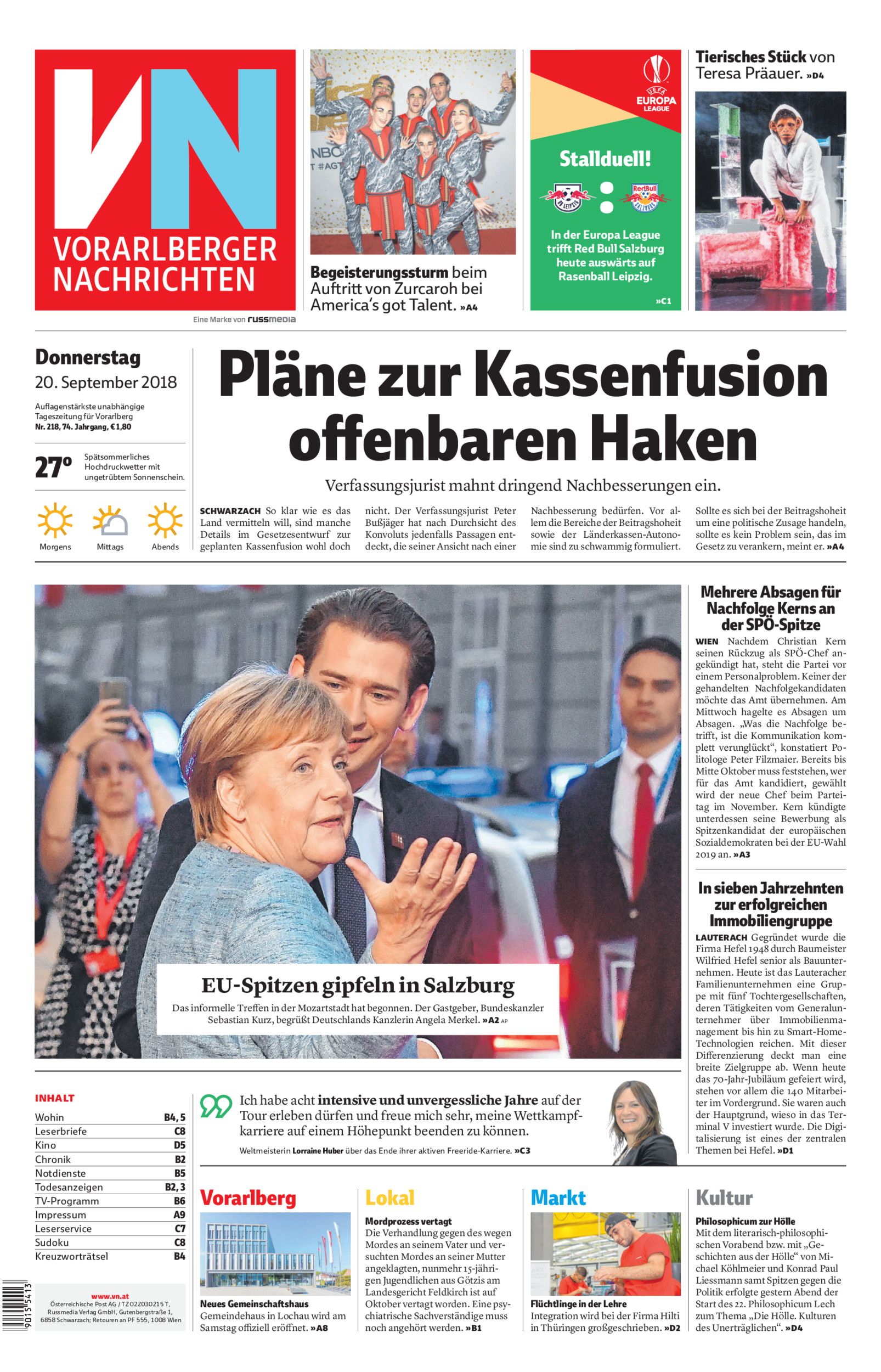 Donnerstag 20. September 2018