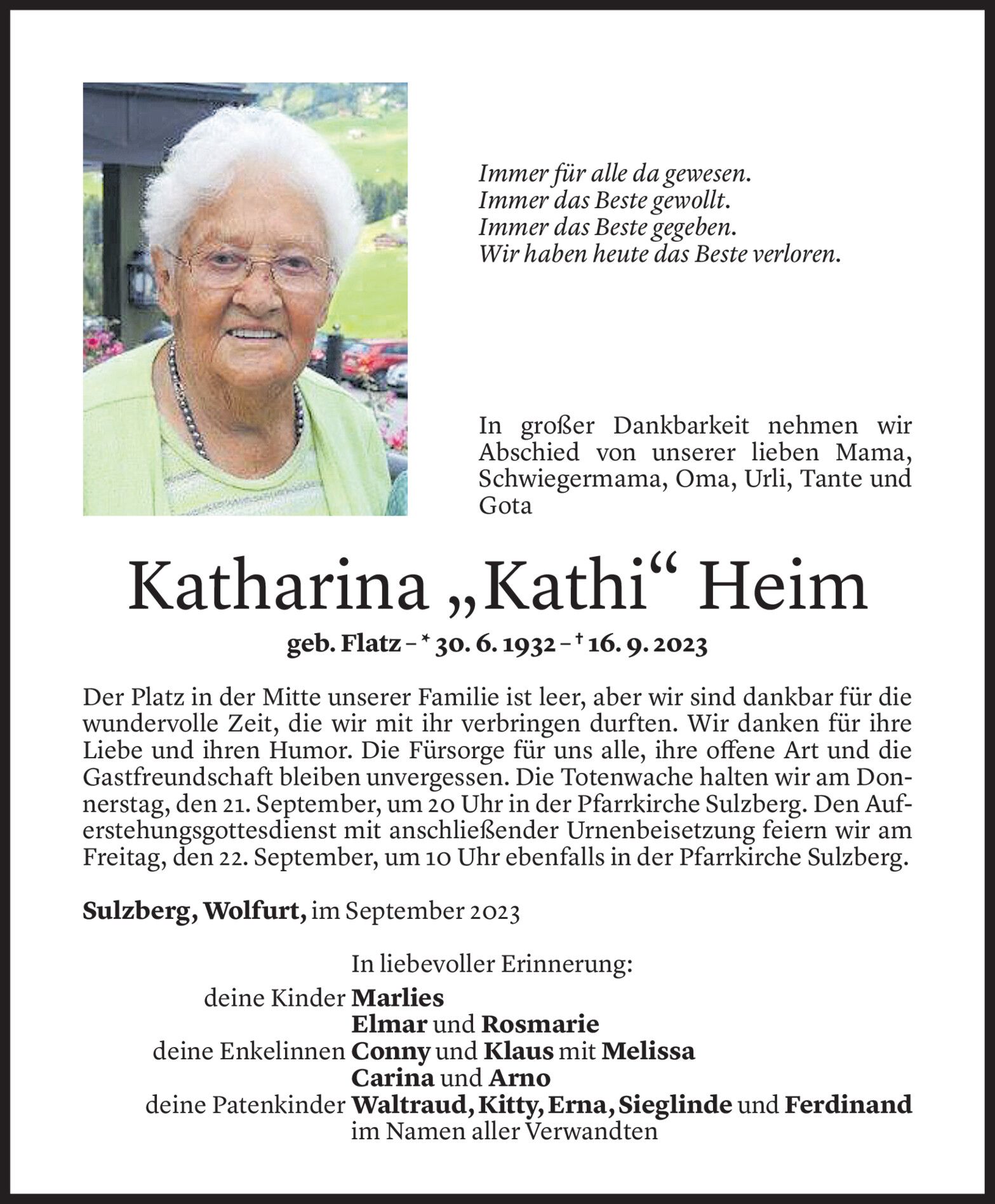 Mittwoch 20. September 2023