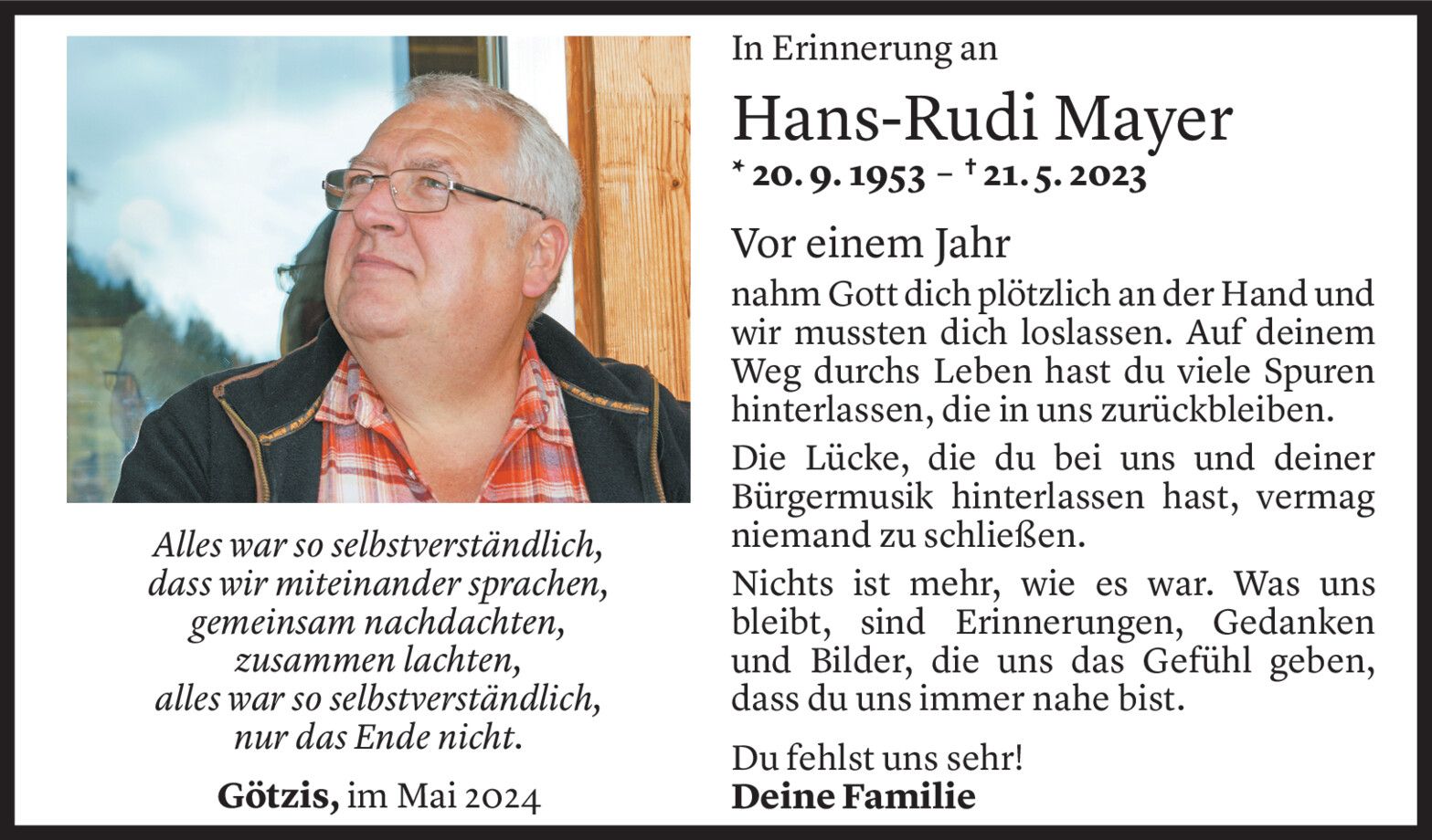 Dienstag 21. Mai 2024