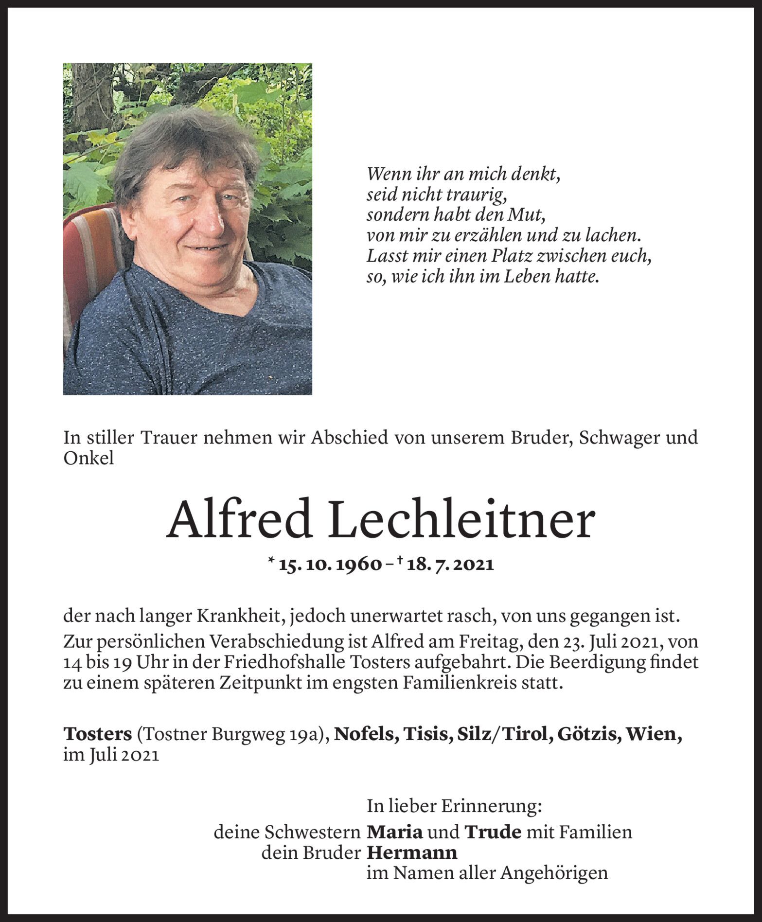 Mittwoch 21. Juli 2021