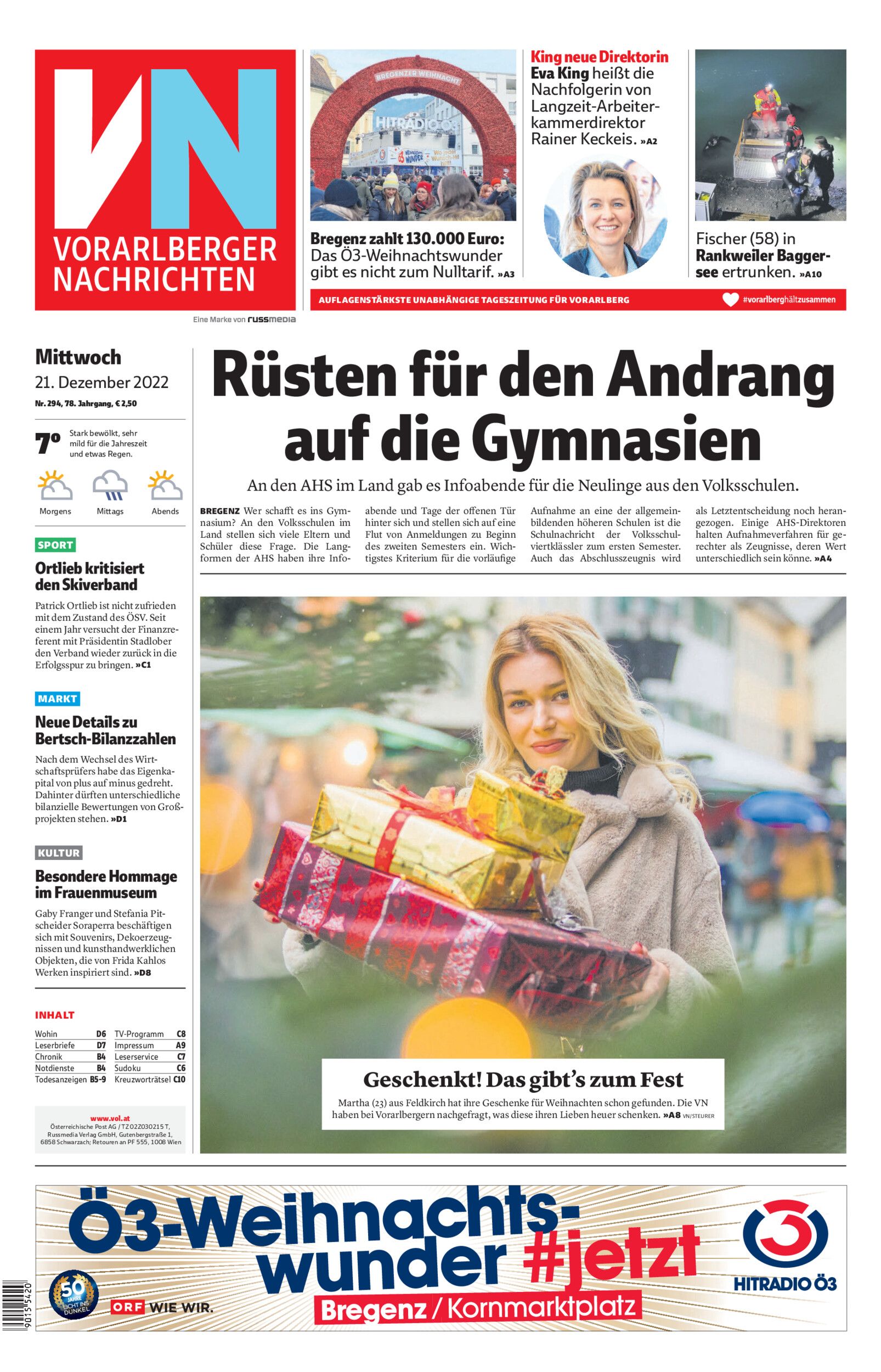 Bregenz zahlt 130.000 Euro: Das Ö3-Weihnachtswunder gibt es nicht zum Nulltarif. »A3