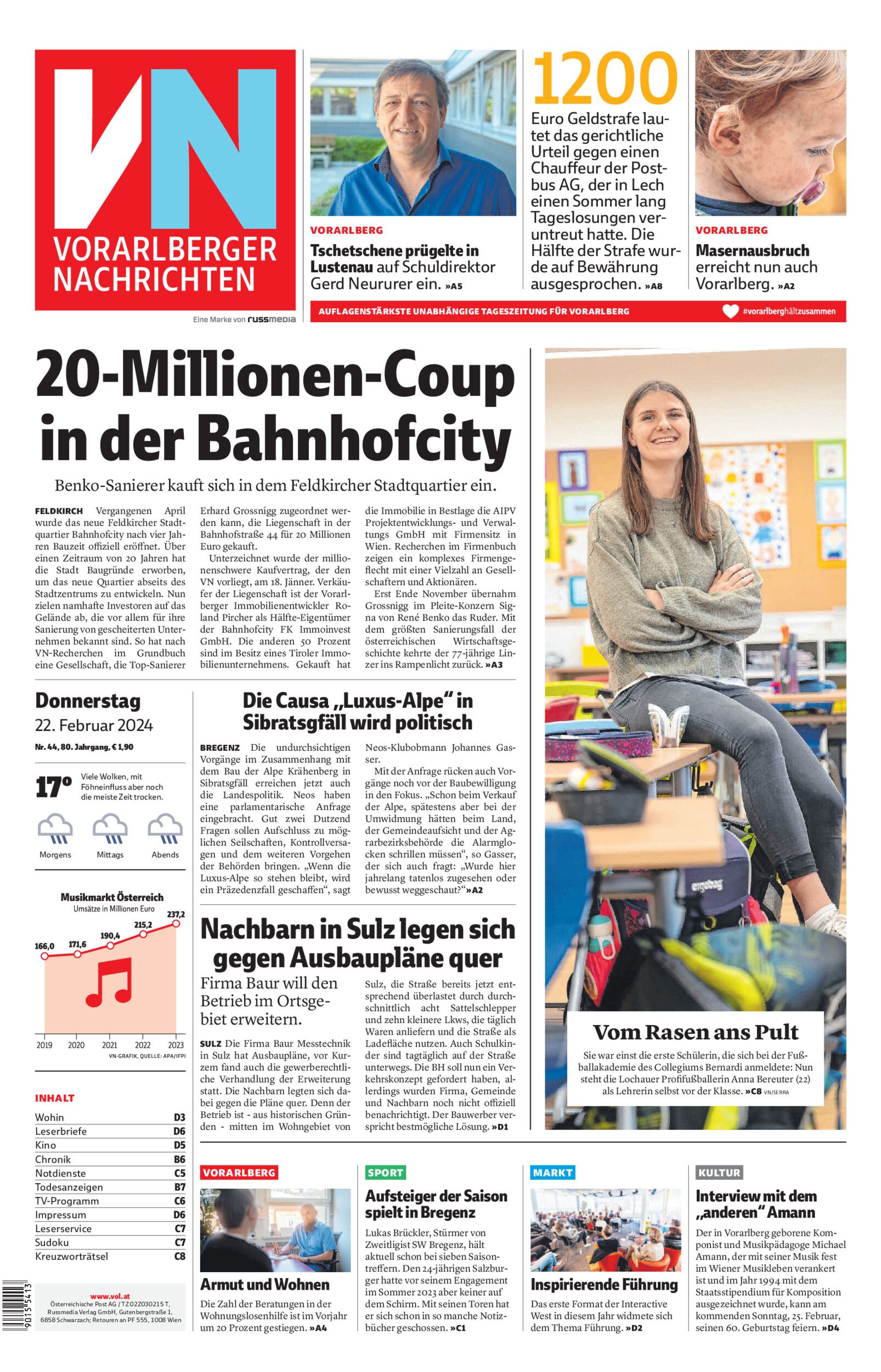 Tschetschene prügelte in Lustenau auf Schuldirektor Gerd Neururer ein. »A5