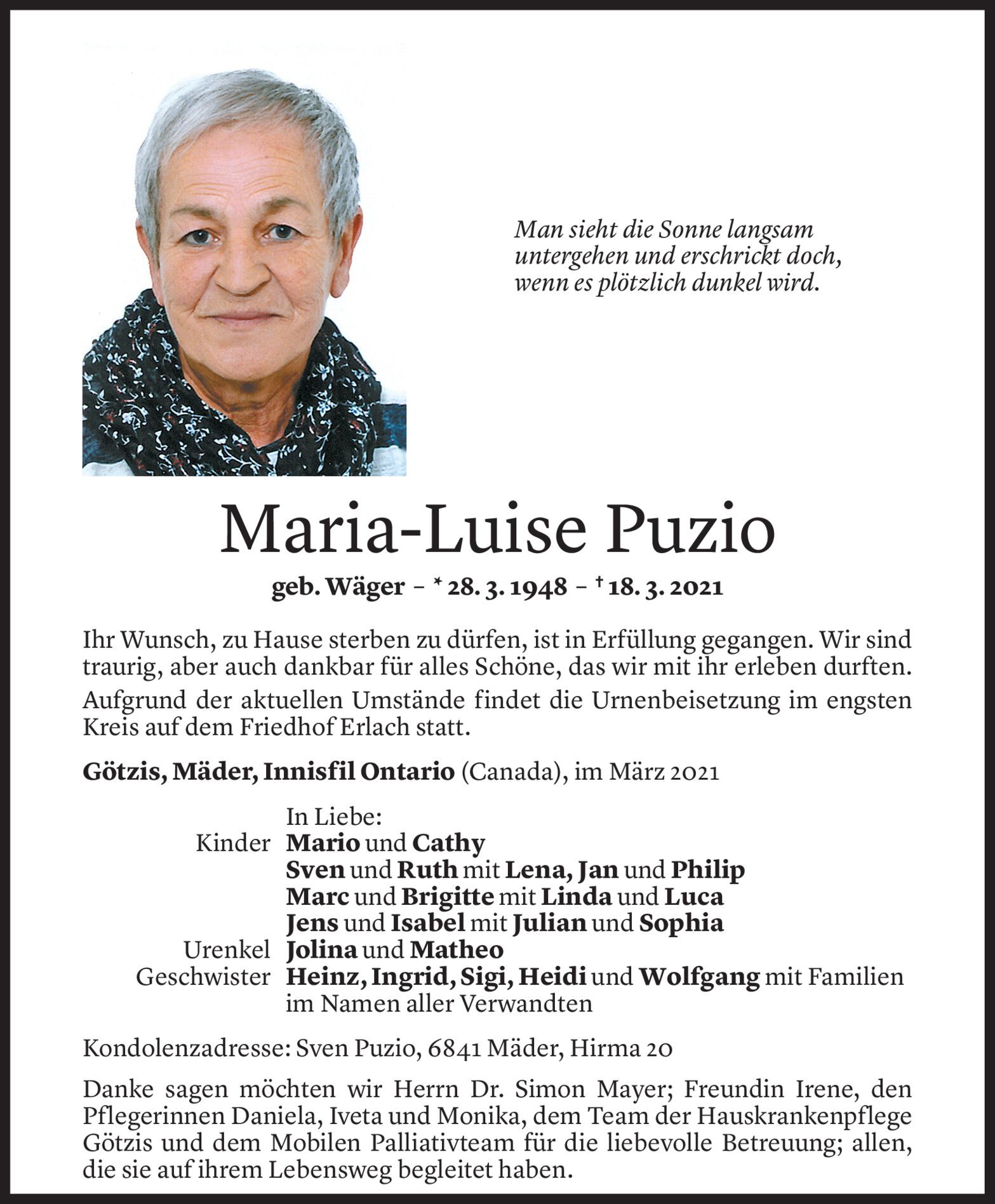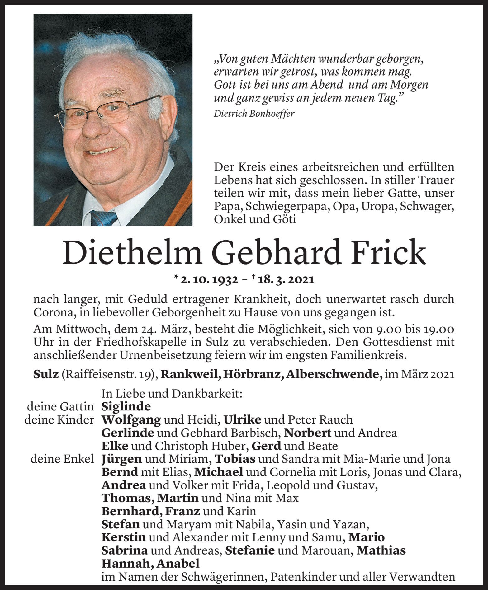 Montag 22. März 2021