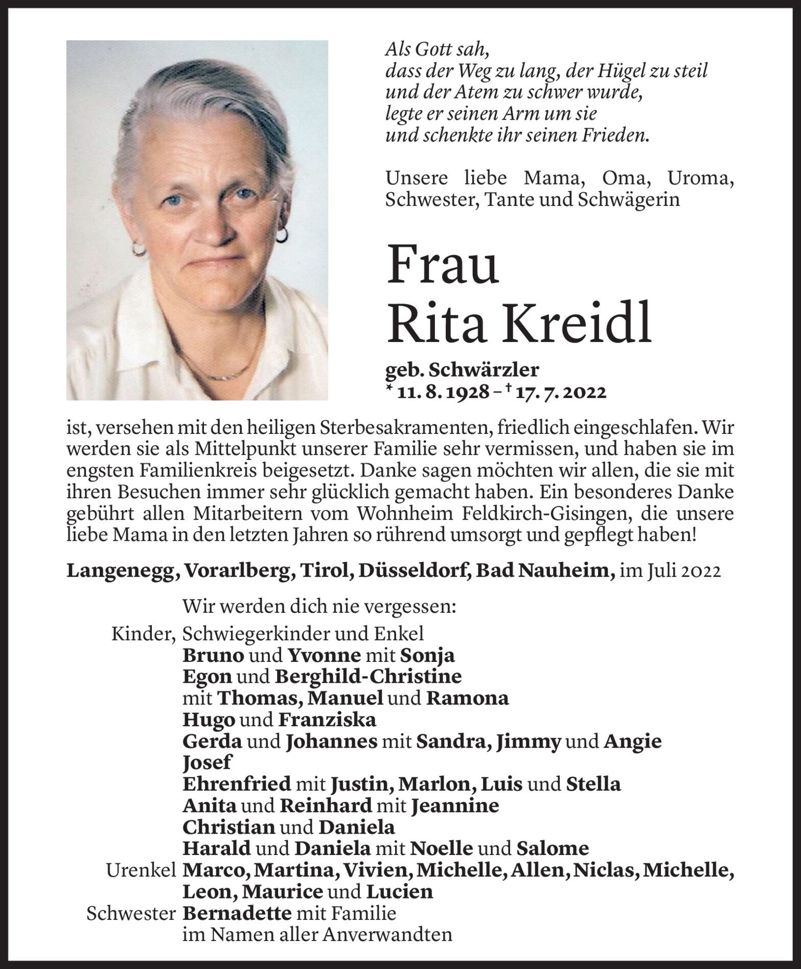 Freitag 22. Juli 2022