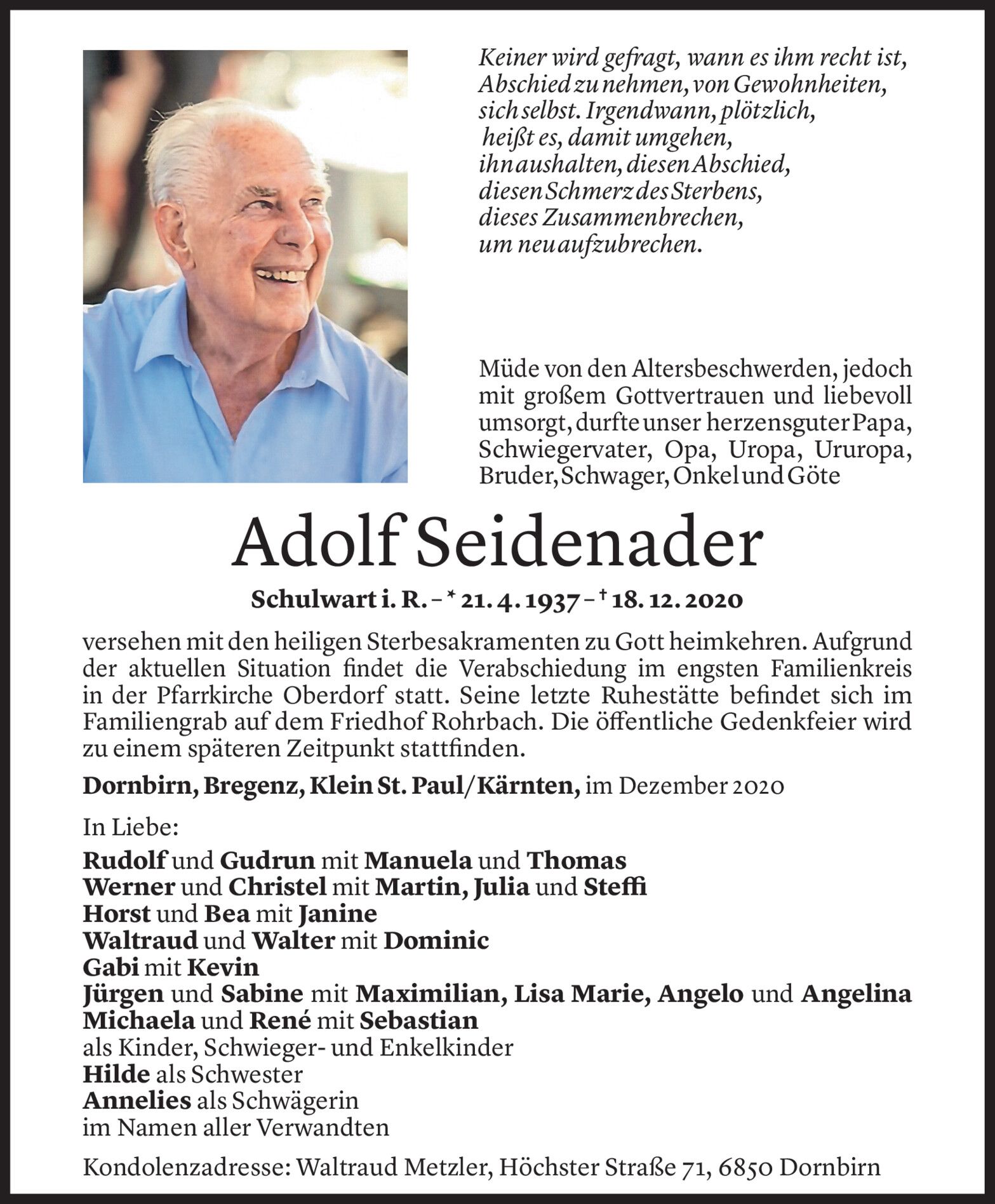 Nachrufe auf Menschen, die Corona zum Opfer fielen. »A4
