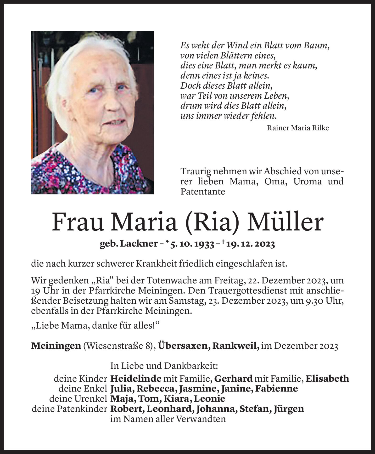 Freitag 22. Dezember 2023