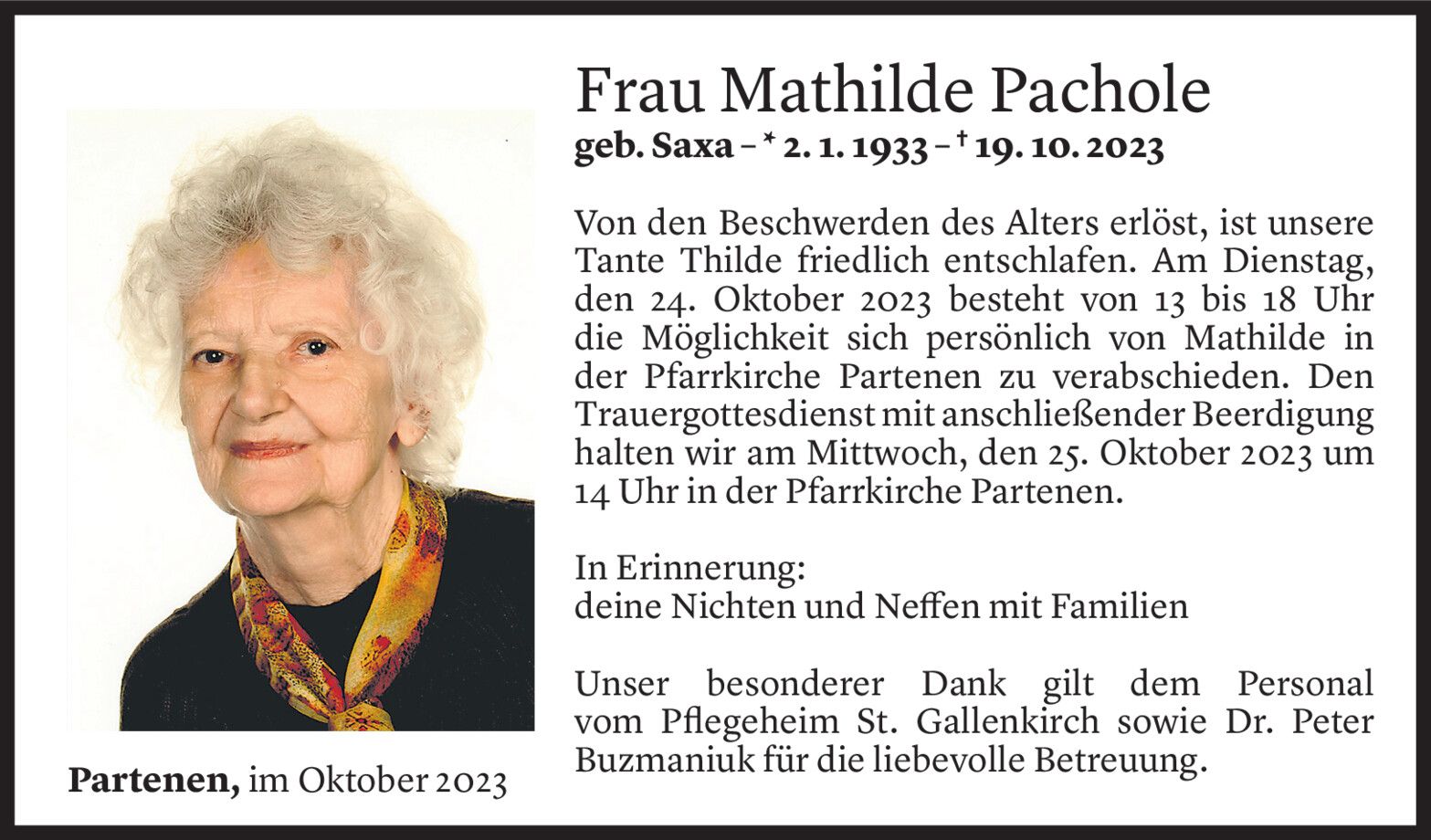 Montag 23. Oktober 2023