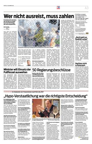Brief an die VN: Kern und Mitterlehner blicken auf 2016 zurück.
