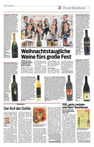 Schüler der Tourismusschulen Bludenz empfehlen sechs Weine zum Menü.