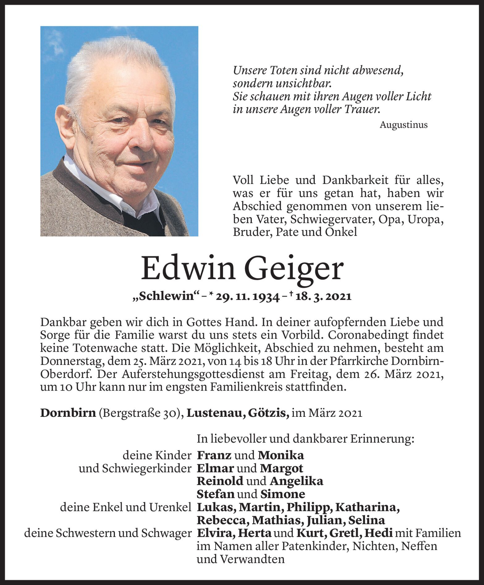 Mittwoch 24. März 2021