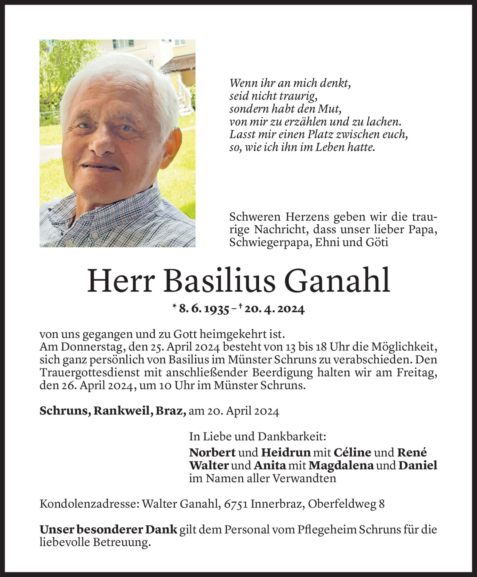Mittwoch 24. April 2024