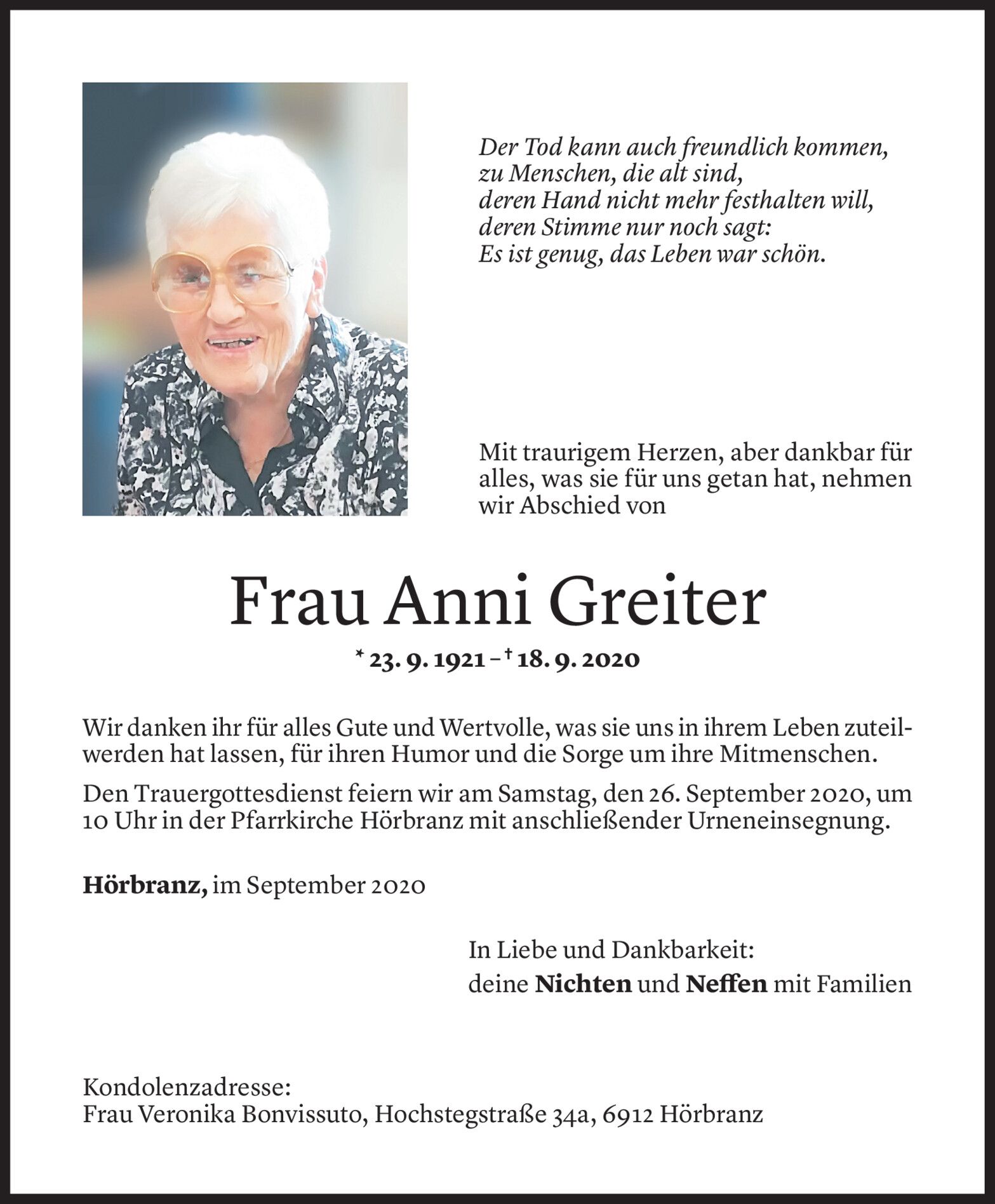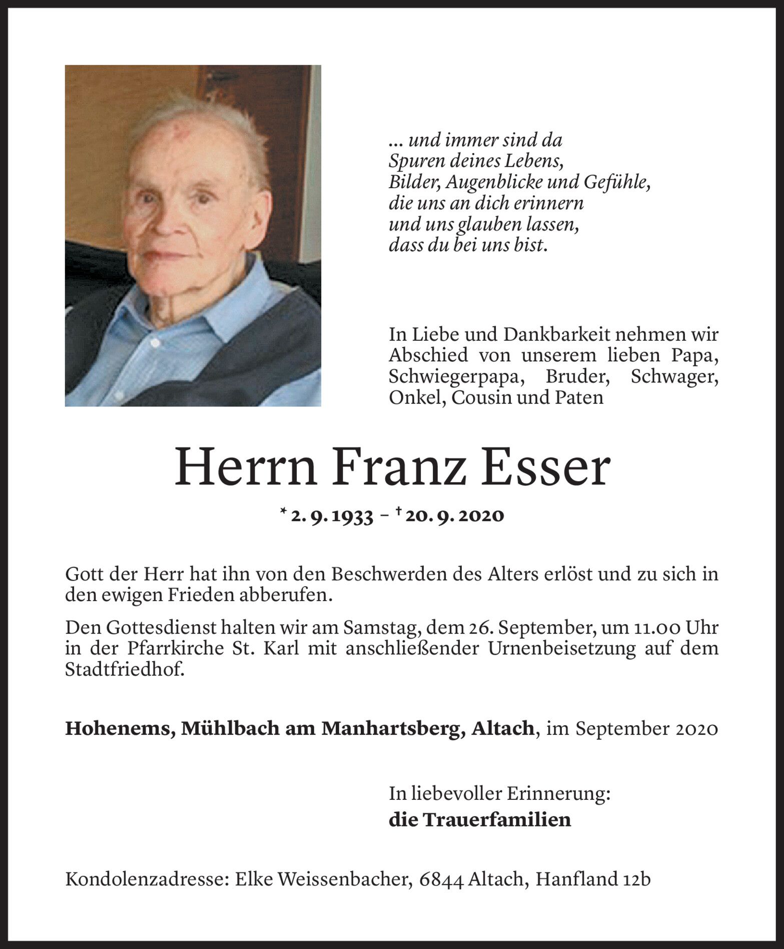 Donnerstag 24. September 2020