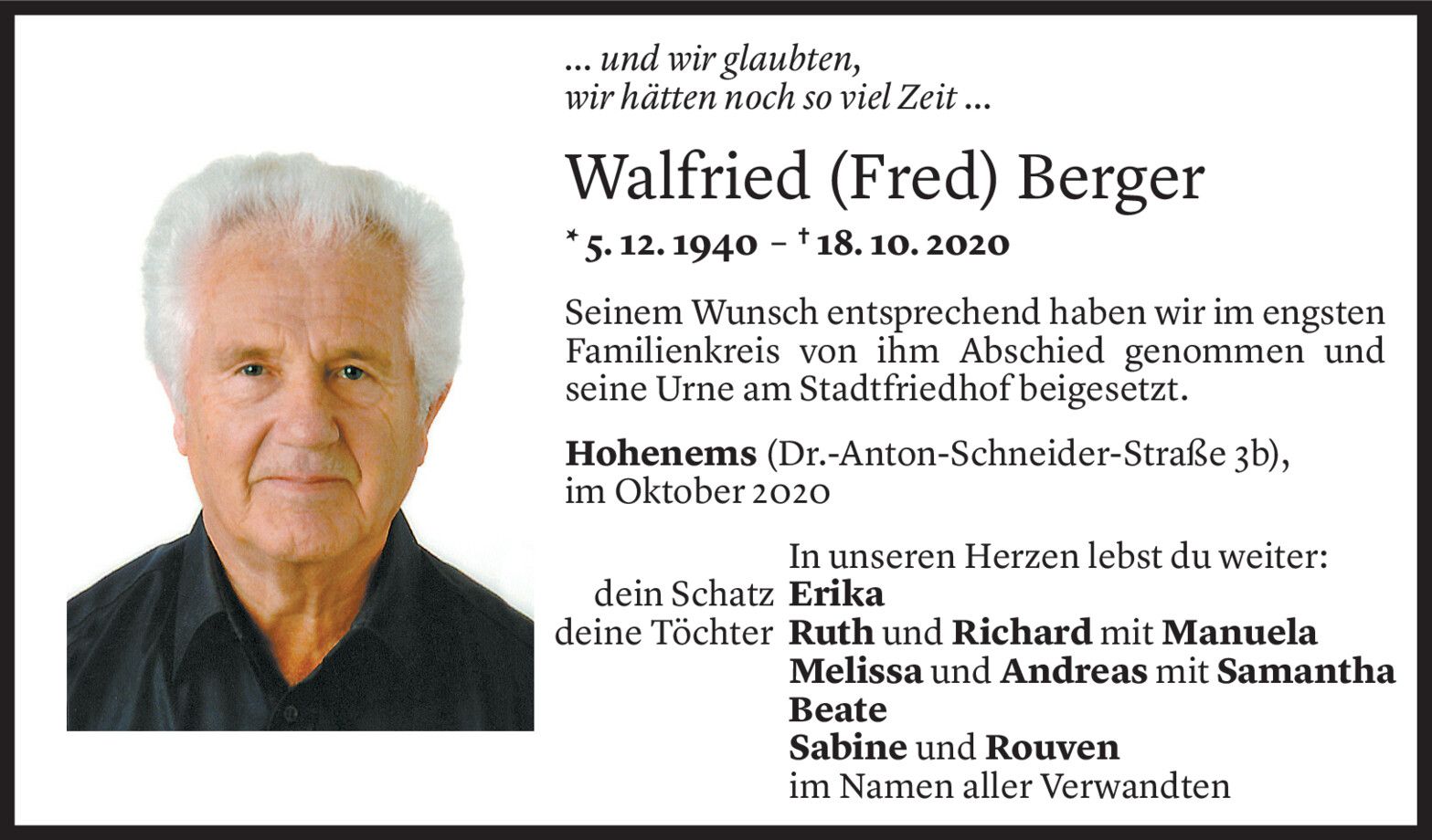 Samstag 24. Oktober 2020