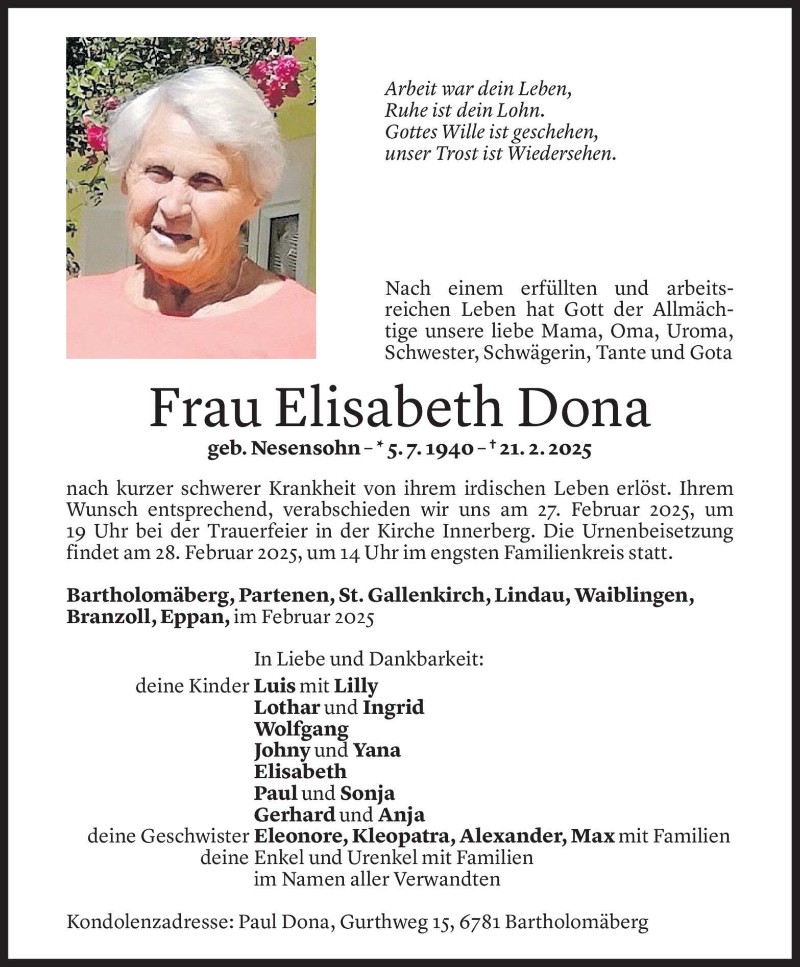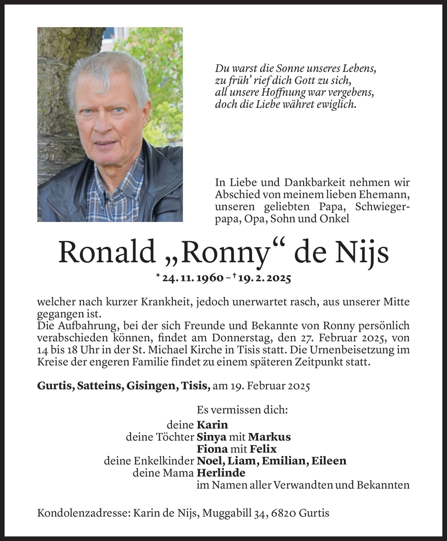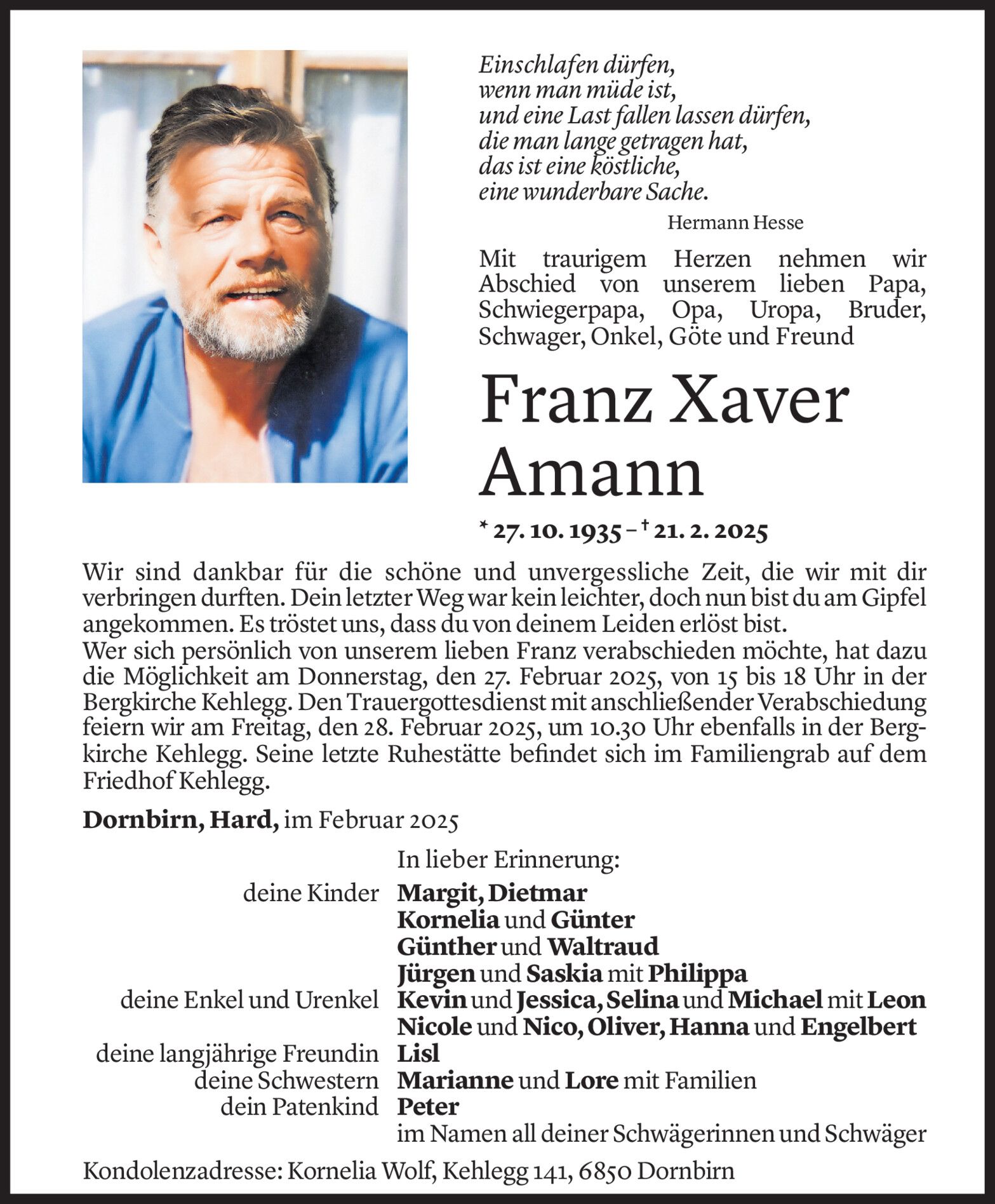 Dienstag 25. Februar 2025
