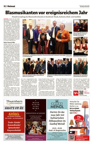 Neujahrsempfang des Blasmusikverbandes in Rankweil: Musik, Kabarett, Rück- und Ausblick.