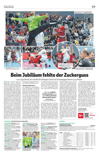Alberschwende bleibt ungeschlagen, Hard jetzt Dritter.