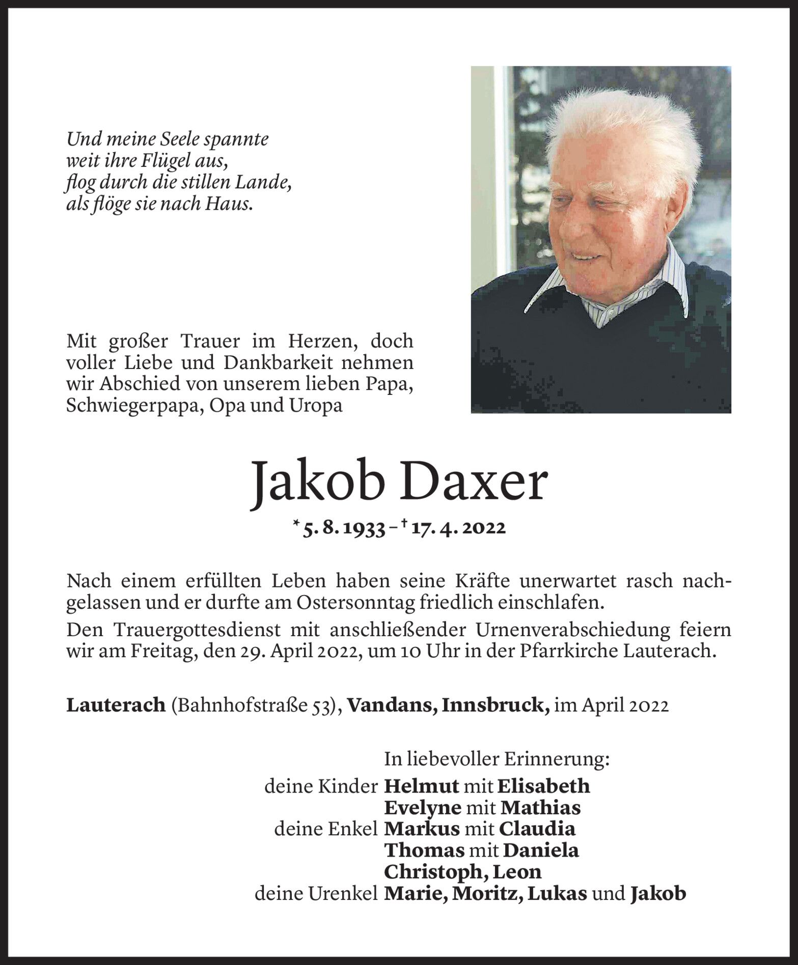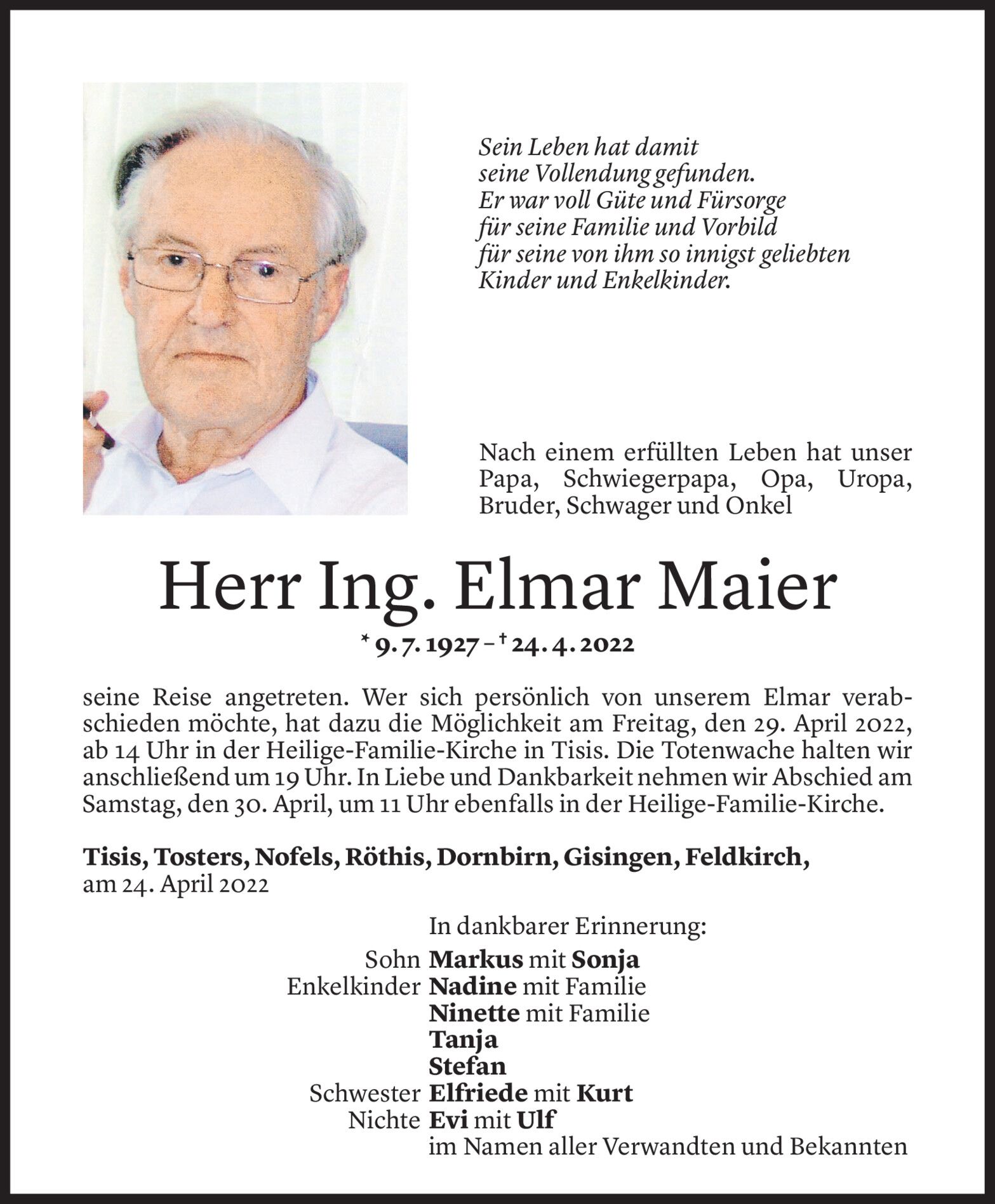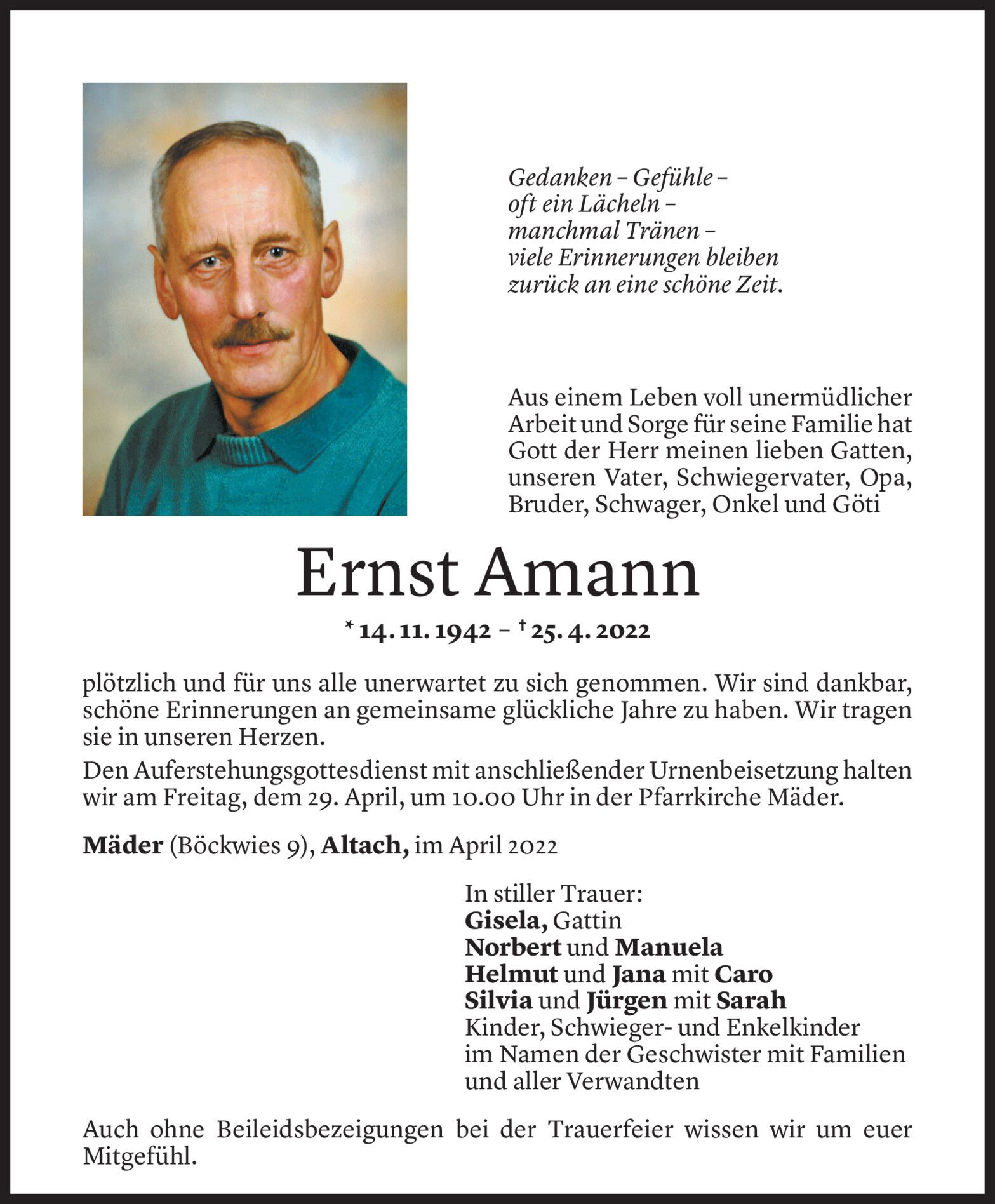 Mittwoch 27. April 2022