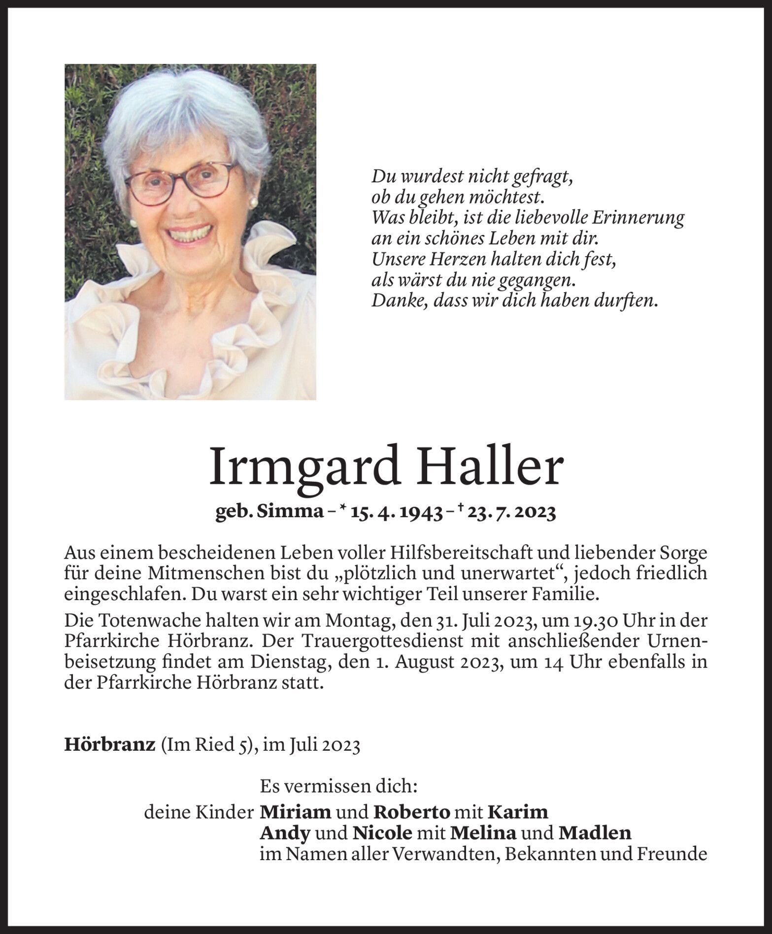 Donnerstag 27. Juli 2023