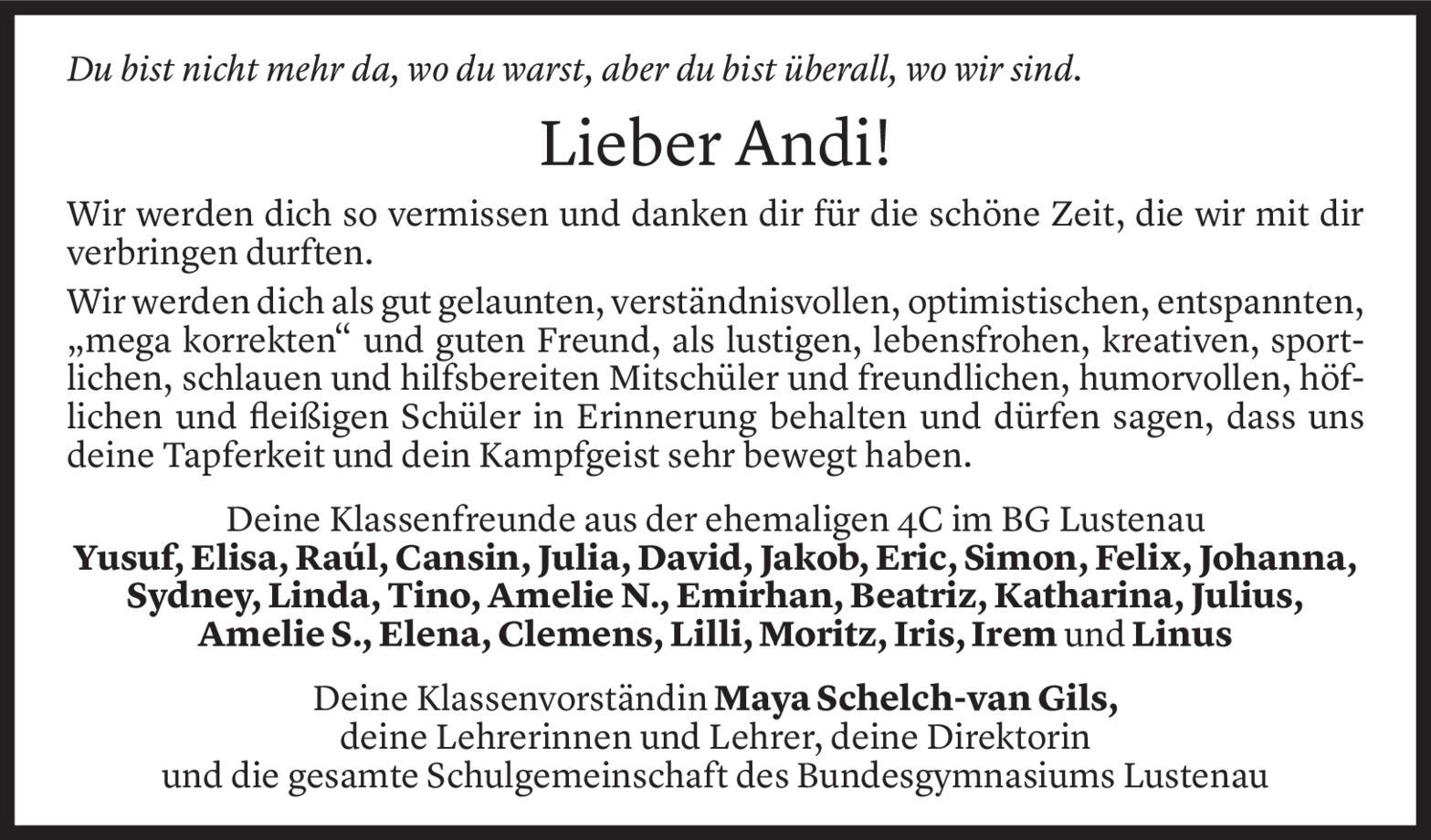 Stilles Gedenken, hallende Worte