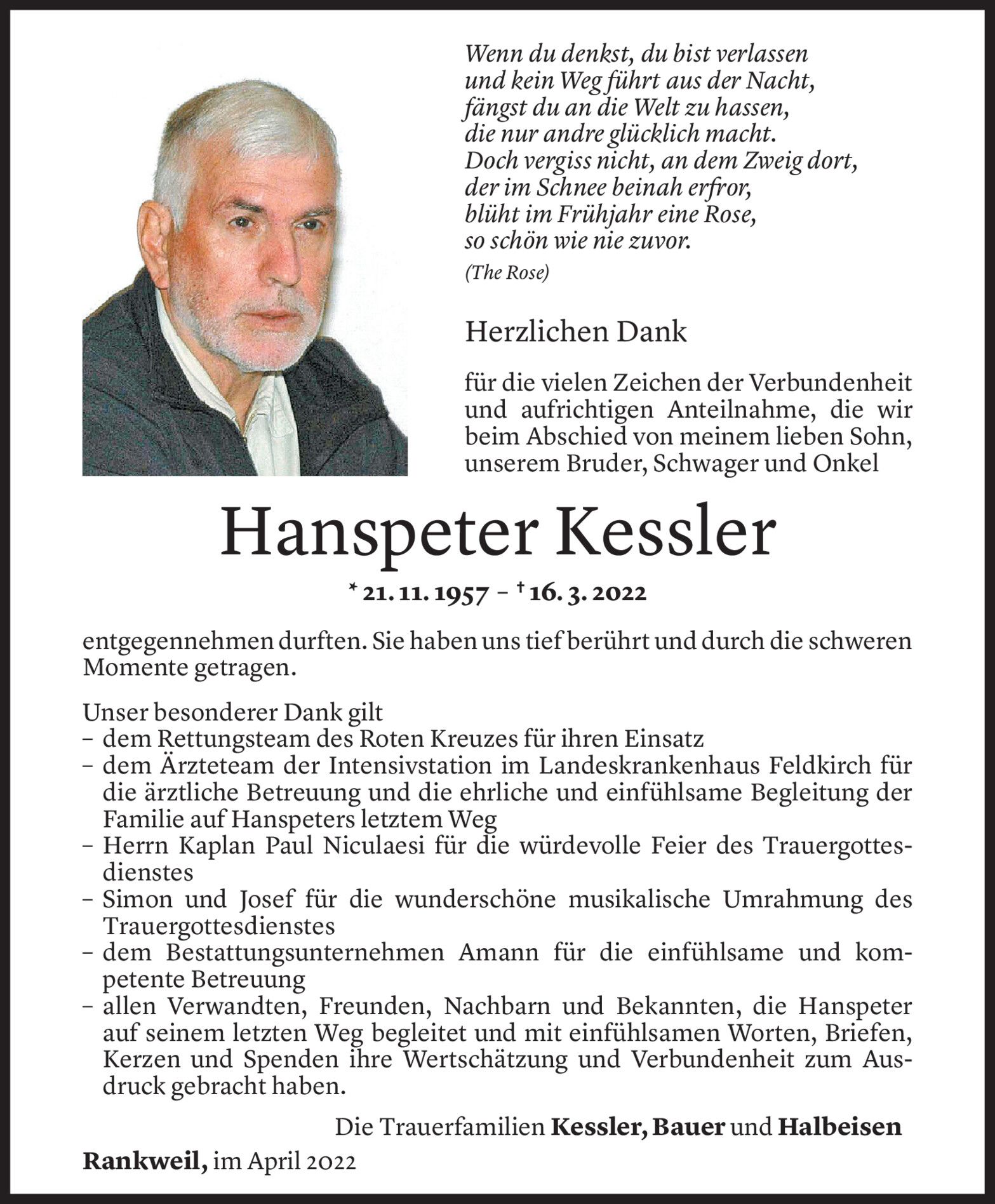 Dank an das Landeskrankenhaus Rankweil