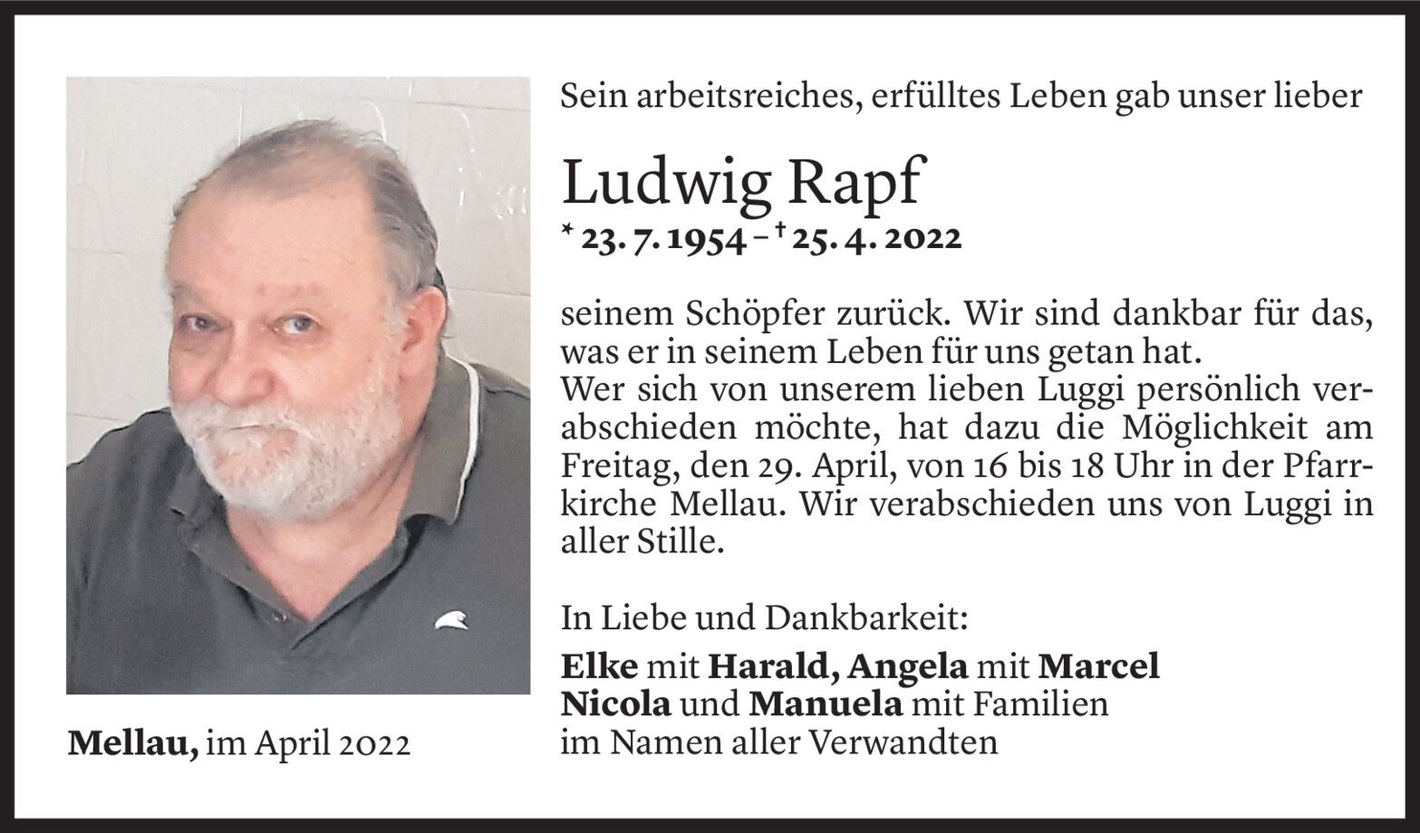 Donnerstag 28. April 2022