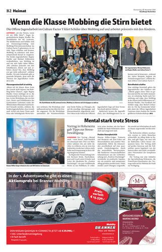 Die Offene Jugendarbeit im Culture Factor Y klärt Schüler über Mobbing auf und arbeitet präventiv mit den Kindern.