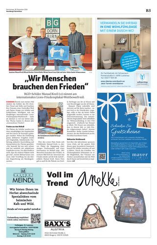 BGD-Schüler Manuel Kreil (12) nimmt am internationalen Lions-Friedensplakat-Wettbewerb teil.