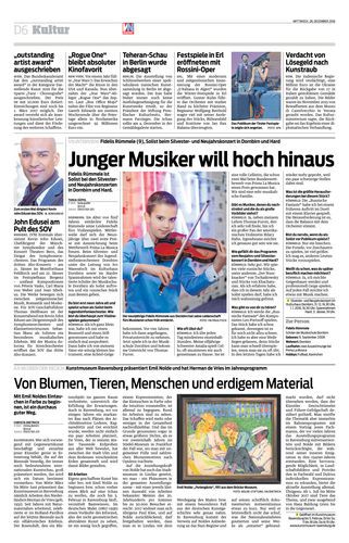 Fidelis Rümmele ist Solist bei den Silvester- und Neujahrskonzerten in Dornbirn und Hard.