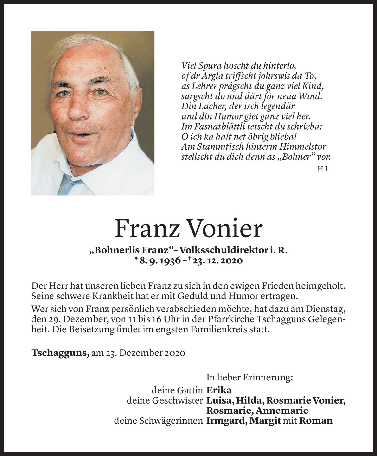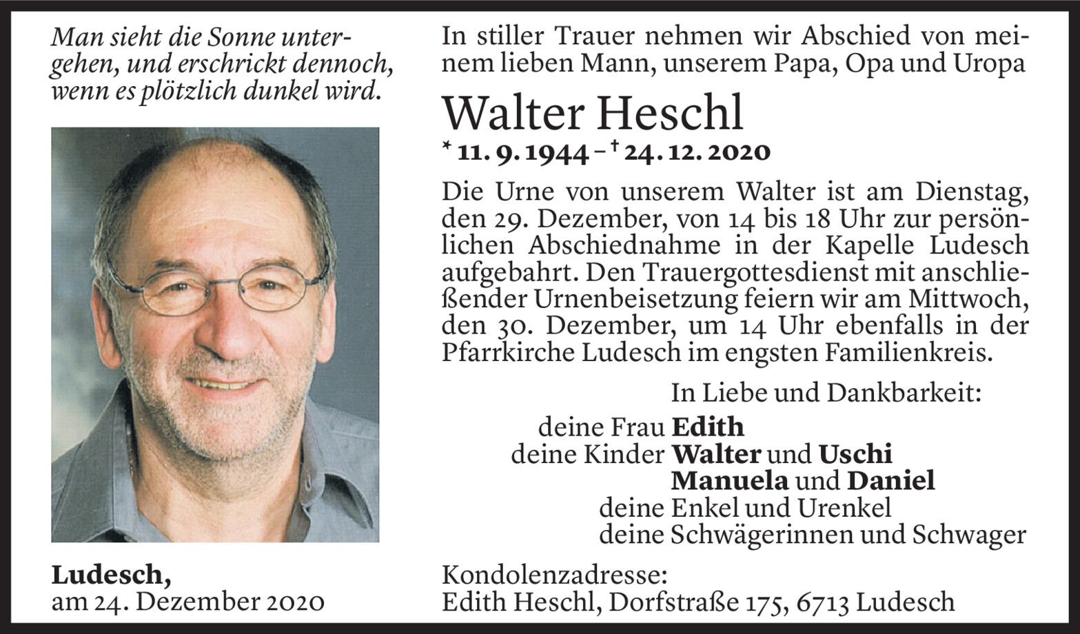 Montag 28. Dezember 2020